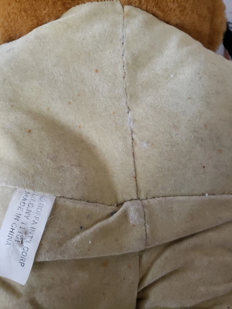 Vintage Goffa Bear In Costume Costume has marks..may or may not come out with stain remover. They are tiny spots. Costume is not removable. Bear in nice condition. Approx. 18 inches.