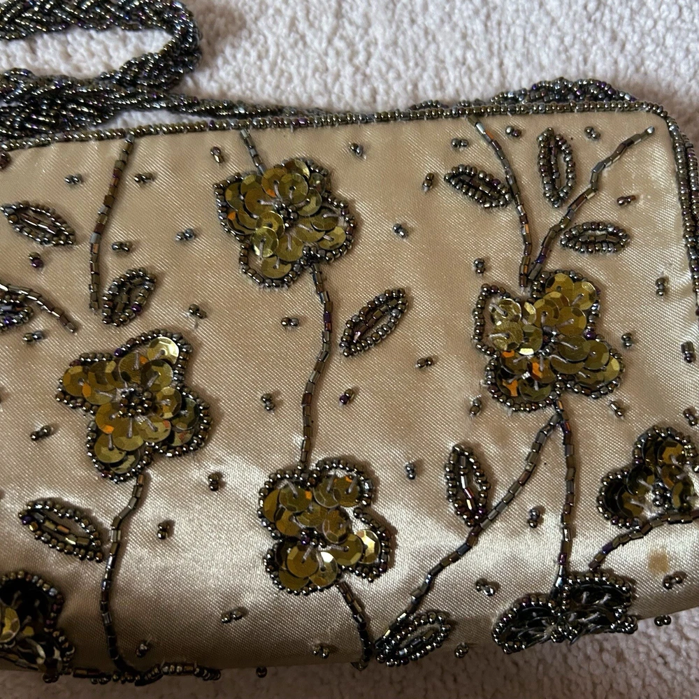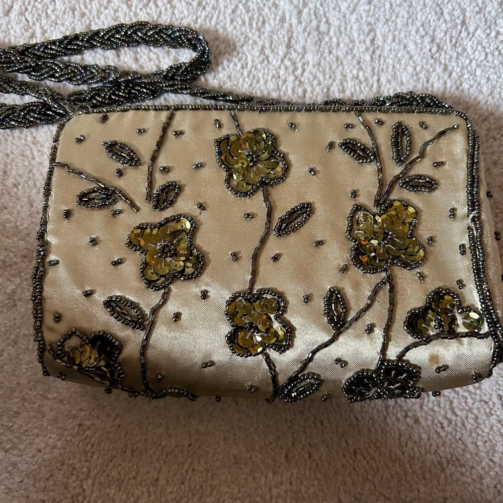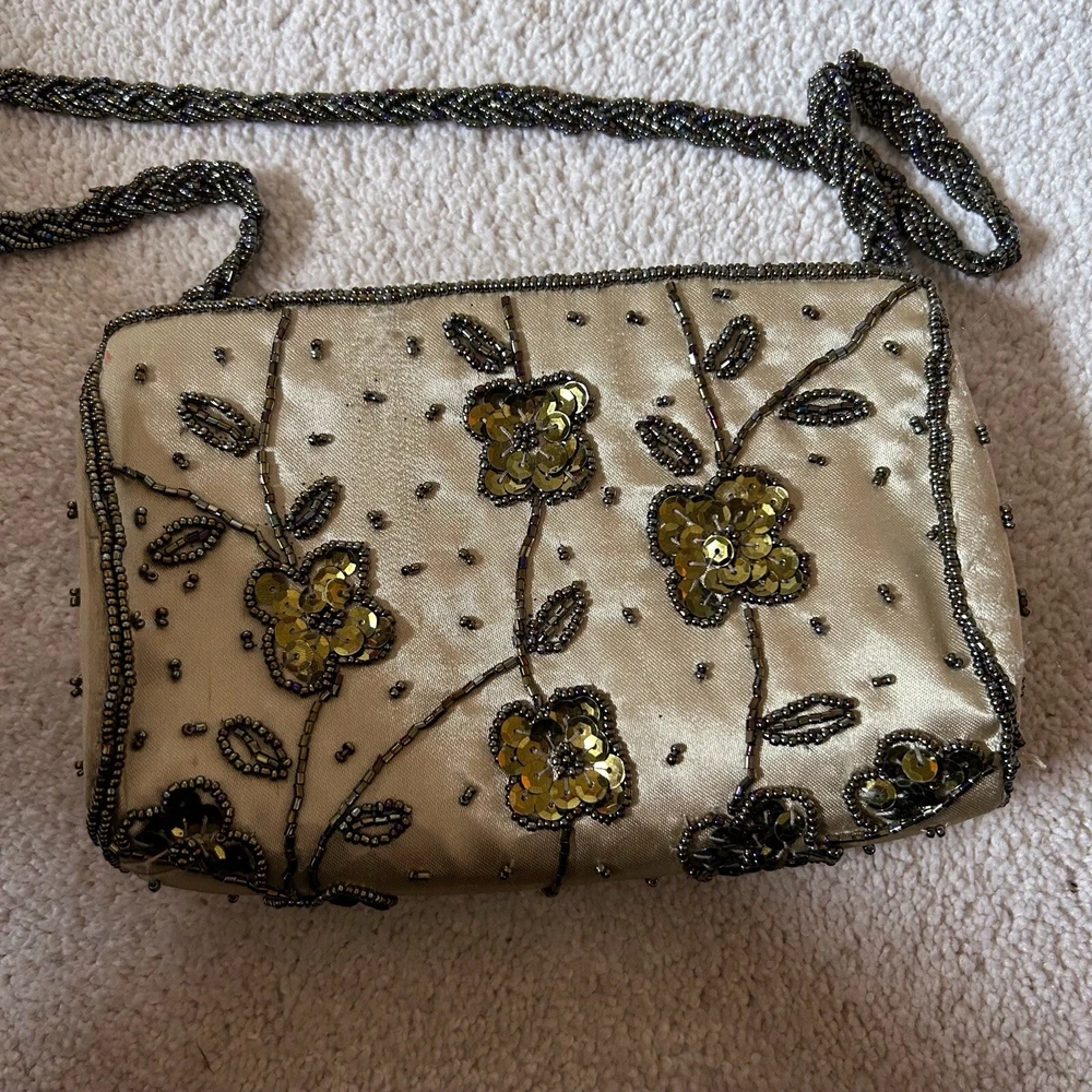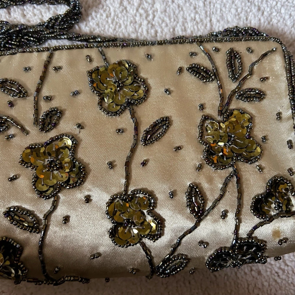 Vintage Gold Satin Beaded Bag Cross Body Evening Bag 90s y2k Embellished Good condition general wear Always happy to combine postage