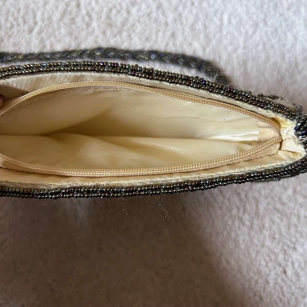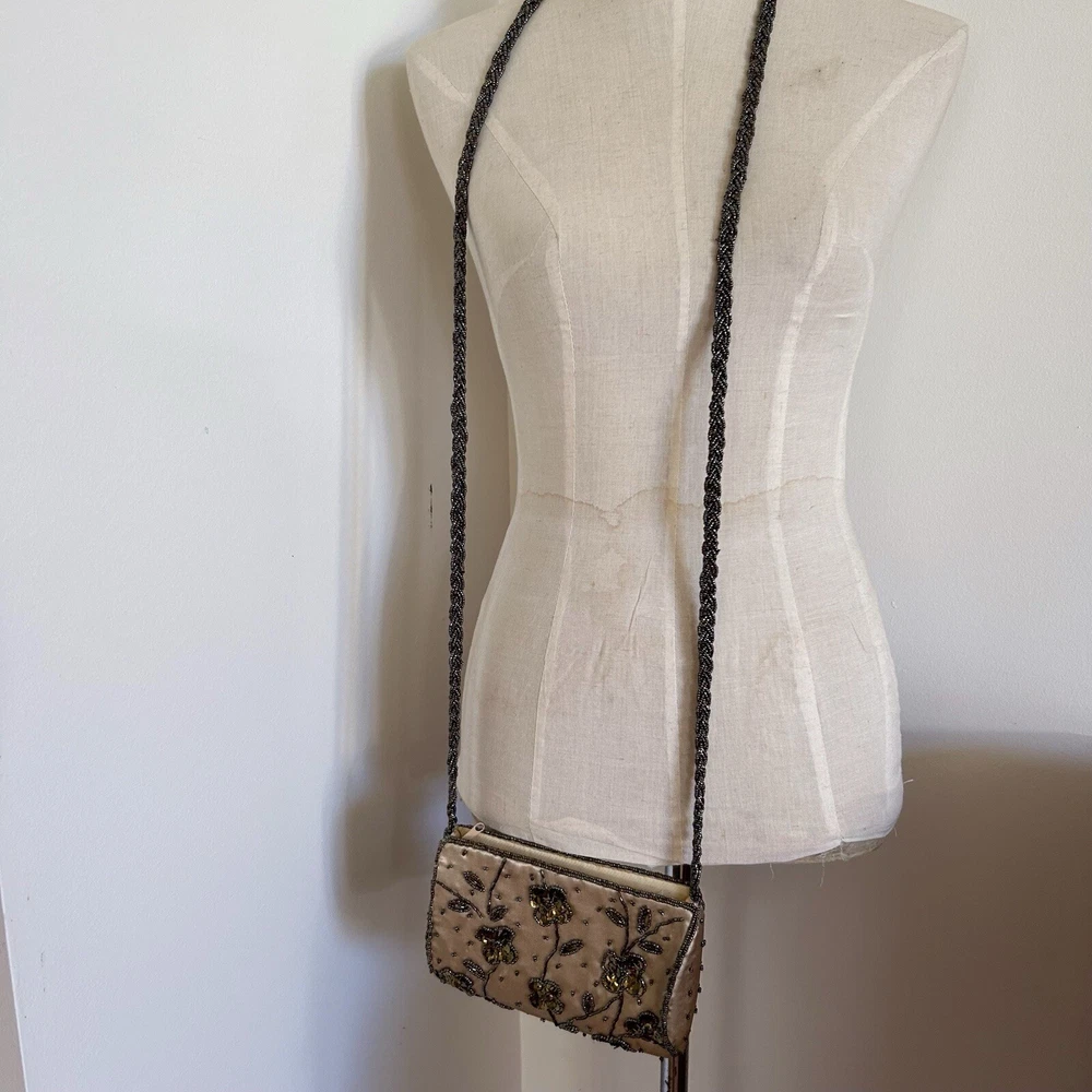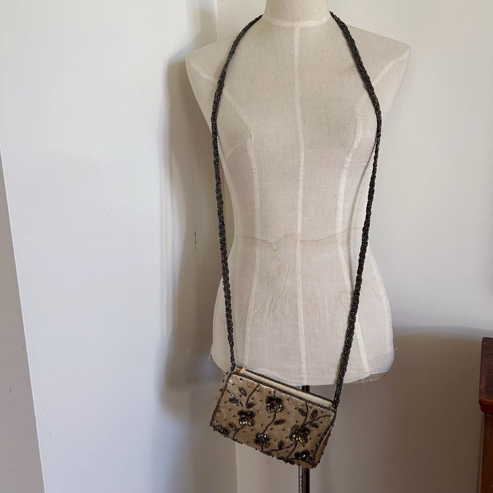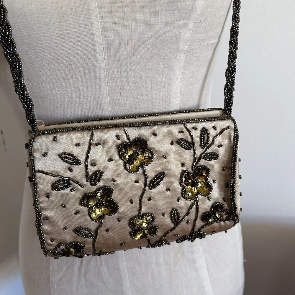 Vintage Gold Satin Beaded Bag Cross Body Evening Bag 90s y2k Embellished Good condition general wear Always happy to combine postage
