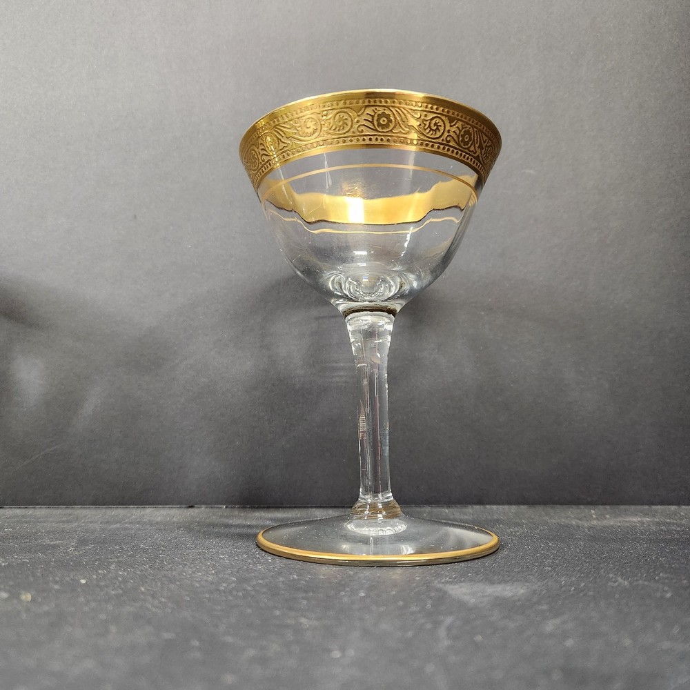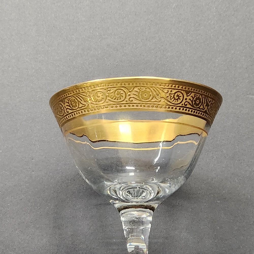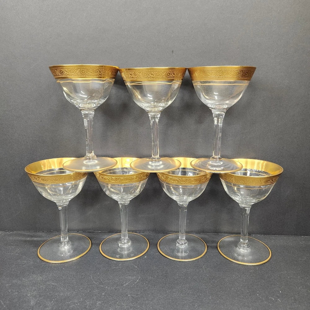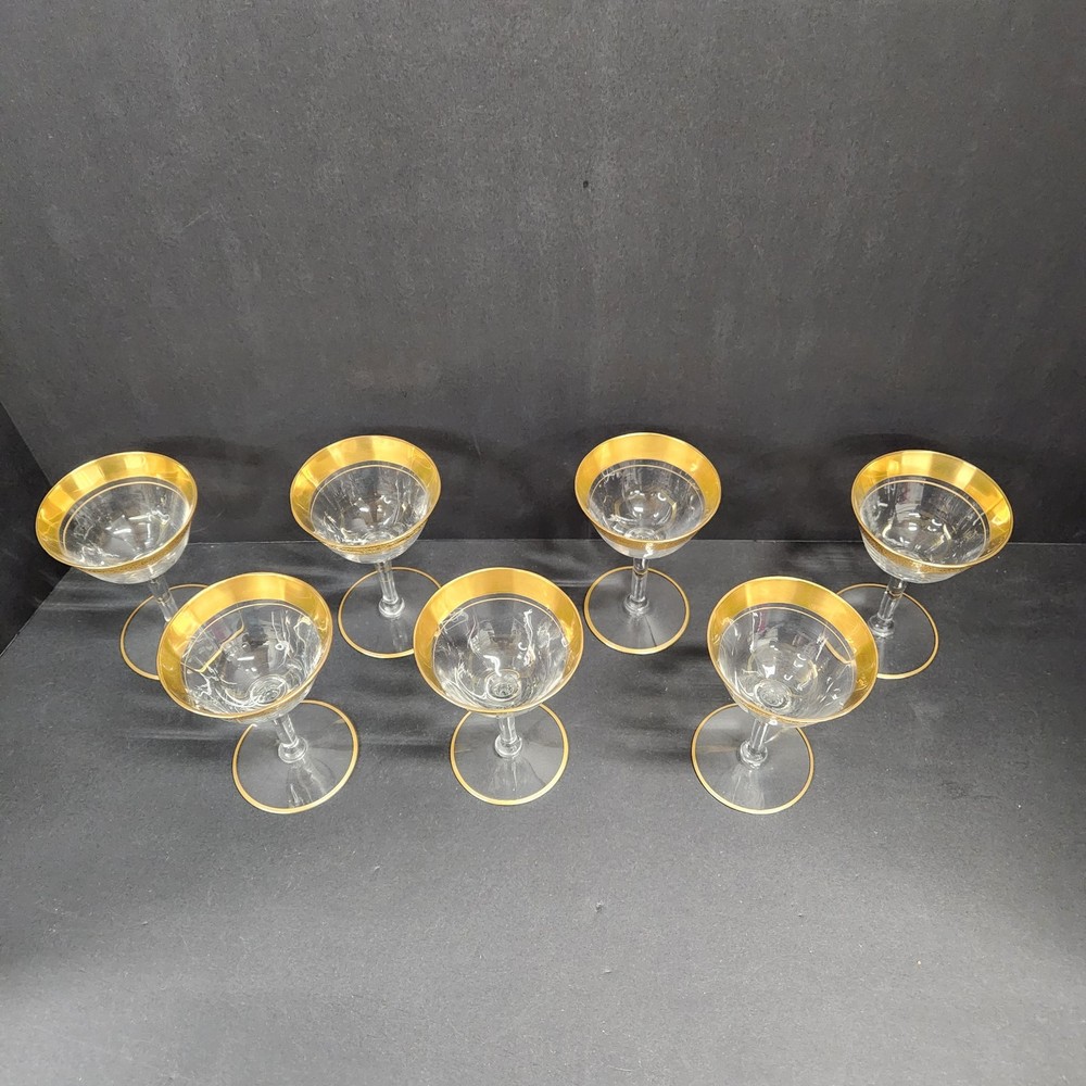 Vintage Coupe Crystal Wine Glasses with Gold and Rose Gold Trim Set of 7
