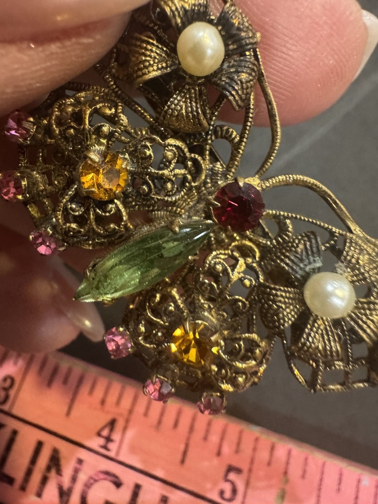 $ 36.96Emmons Victorian Silver Tone Crystal Pendant Brooch Pin Ornate Large