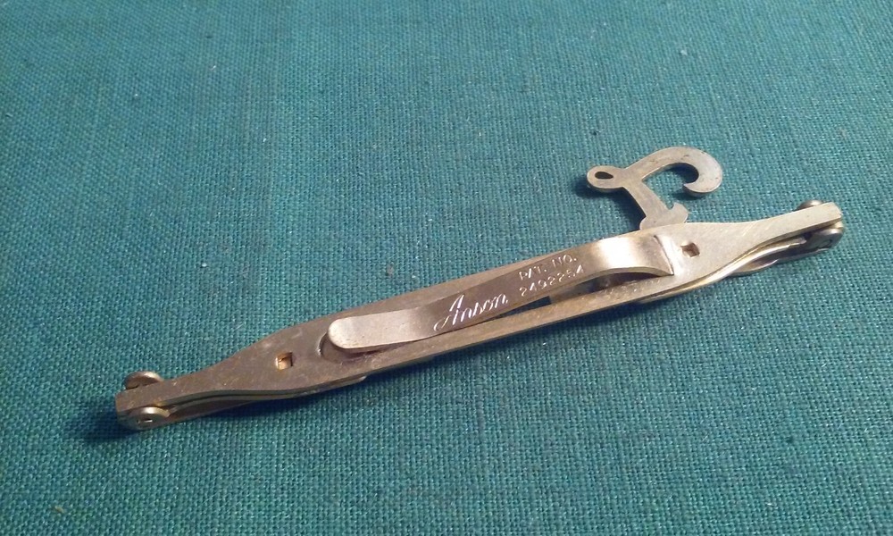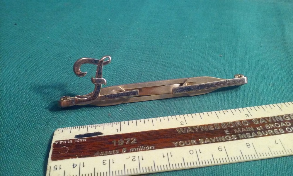 Vintage Gold-Tone Specialty Tie Clip Bar w/ Cursive Letter "F" by Anson 3" Long.