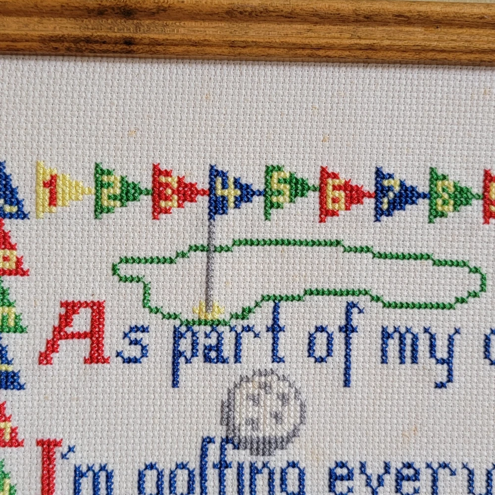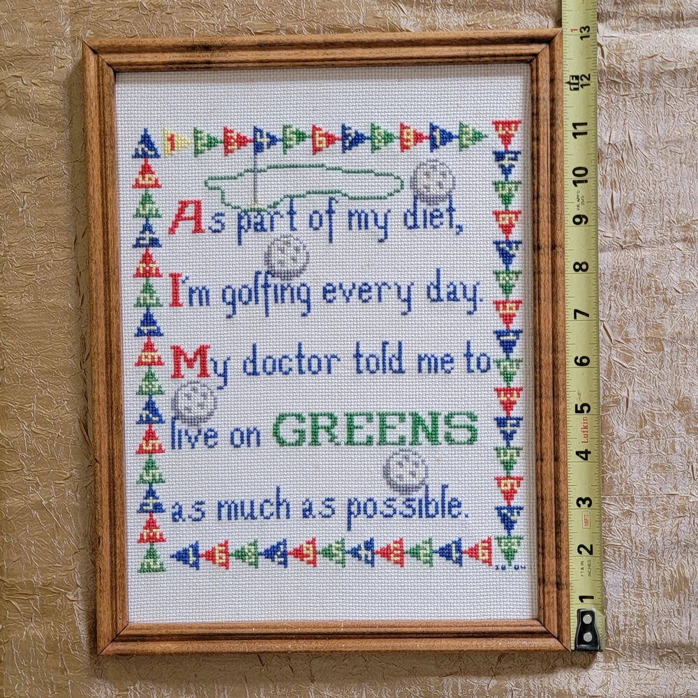 Vintage Golf Cross Stitch Needlework Framed Retro Home Office Decor Pre~Loved. In nice vintage condition. *Please note there are signs of small dots (splash-like) discoloration on fabric. Not sure if it is possible to remove or if stained. *Some minor peeling of paper on back of frame. Otherwise, it's in nice condition & nicely framed. ** Please refer to listing photos for condition details & measurements. 💛 Tia's Boutique offers: ▪︎ Flat shipping rates for all packages up to 5 lbs. ▪︎ All purchases are mailed out within ONE (next) business day! ▪︎ FREE Returns kindly accepted within 30 days of purchase. ▪︎ Shipping from a smoke-free home. ▪︎ Packaged with care & gratitude. Please reach out with any questions you may have. Thank you for visiting my shop & happy ebaying! 😊
