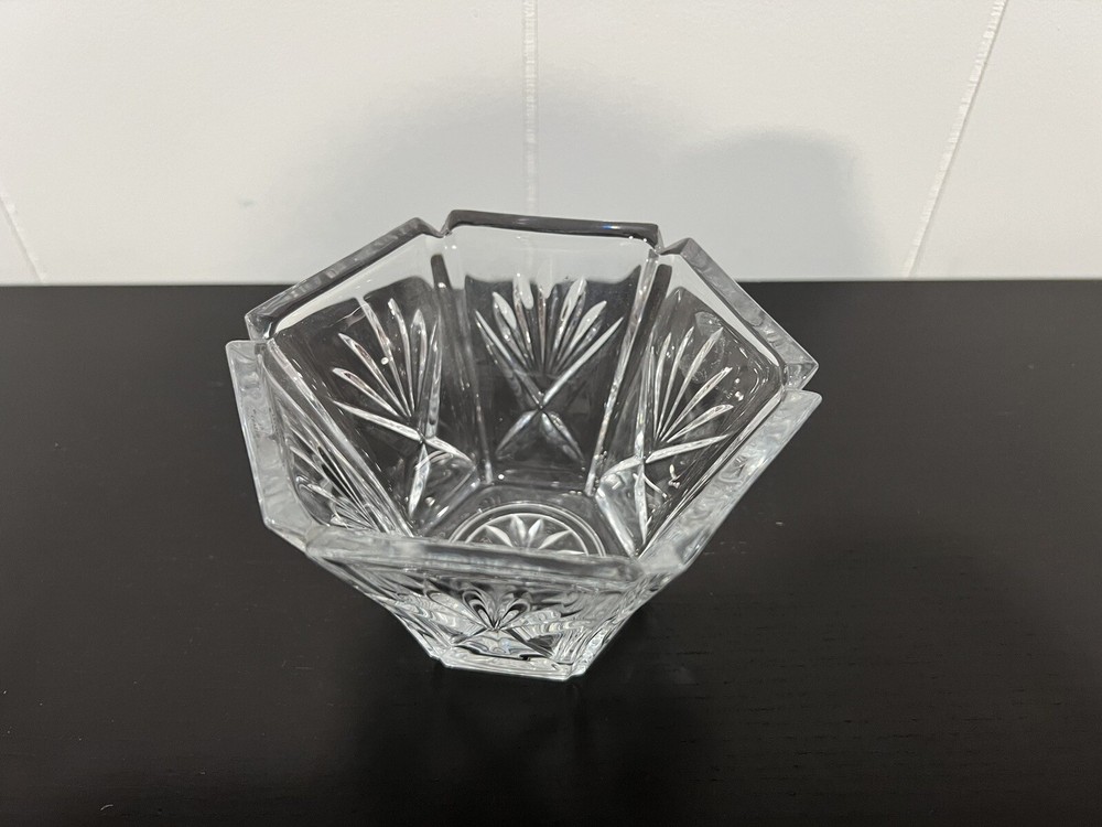 This vintage Gorham Avon 1995 cut crystal serving dish is perfect for displaying cranberries or candy. The dish measures 5 inches in diameter and features a clear color that will complement any decor. Made from high-quality crystal material, this dish is durable and will last for years to come. It is an ideal addition to any collection of decorative cookware, dinnerware, and serveware. The brand, Gorham, is well-known for producing elegant and sophisticated serving dishes, making this a great choice for any collector or hostess.