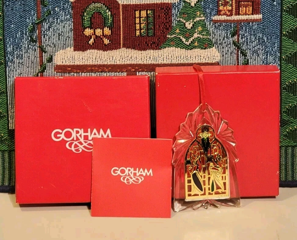 Pattern: stained Department: Adult Antique: No Shape: Irregular Brand: Gorham Time Period Manufactured: 1990-1999 Type: Ornament Subject: crystal stain window Collection: Ornaments Vintage: Yes Recipient: Multipurpose Occasion: Christmas Country/Region of Manufacture: Germany Number of Items: 1 Age Level: Over 18 Years Size: Small Material: Crystal Original/Licensed Reproduction: Original Set Includes: Ornament Personalize: No Character: none Production Style: Stained Glass Item Length: 2 in Item Height: 3.5 in Handmade: No Features: Vintage Theme: stain glass window Color: Multicolor