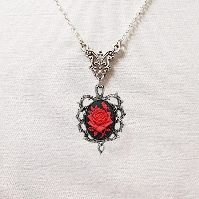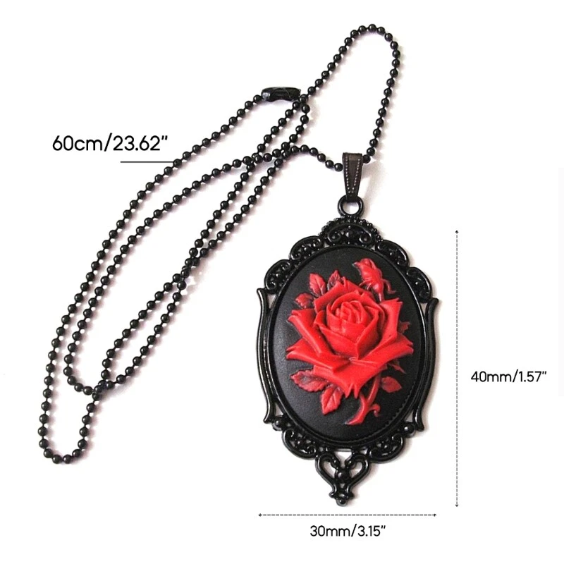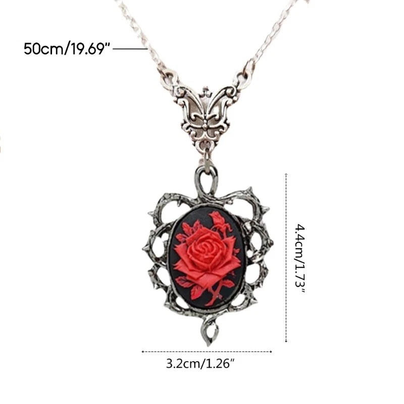 Vintage Gothic Rose Necklace Victorian Black Red Flower Pendant Necklace Jewelry Features: Gothic rose necklace,rose pendant is associated with love and romance, new beginning and it is also a symbol of in life. Material,rose cameo in thorns pendant necklace make of metal material,with antique silver finish. gothic jewelry gifts on birthday, party, halloween,new year, valentines day, mothers day, thanksgiving day, christmas, anniversary, wedding, graduation to families, friend, colleagues, Occasions, such as parties, concerts, or even daily wear, making you stand out from the crowd. This necklace is for those who appreciate unconventional fashion and want to express-their individuality through accessories. Specifications: Metal A B Package Includes: 1 Piece Vintage Gothic Rose Necklace note: Please allow 1-2cm errors due to manual measurement. Due to the difference betweeen different monitors,the picture may not reflect the actual color of the item.