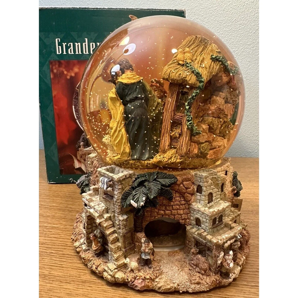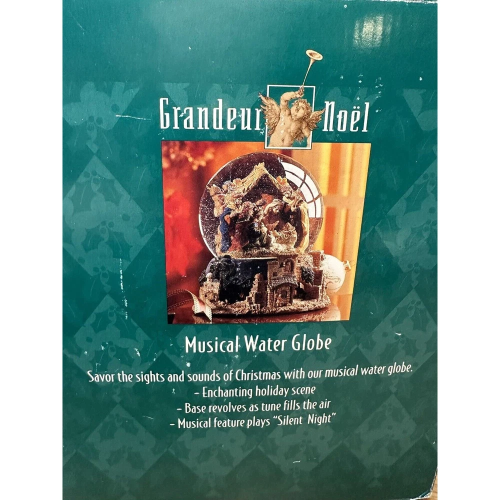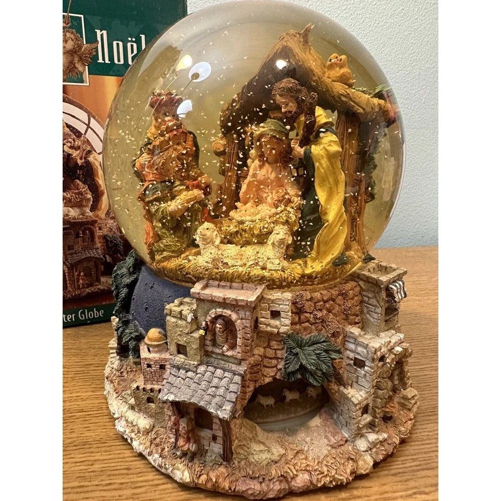 This vintage Grandeur Noel snow globe is sure to fill your Christmas season with joy. The globe features a beautiful nativity scene with a mix of materials including glass, ceramic and porcelain.