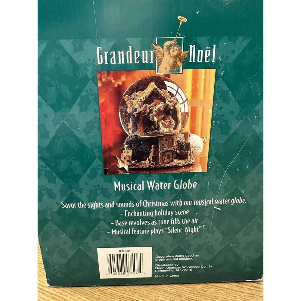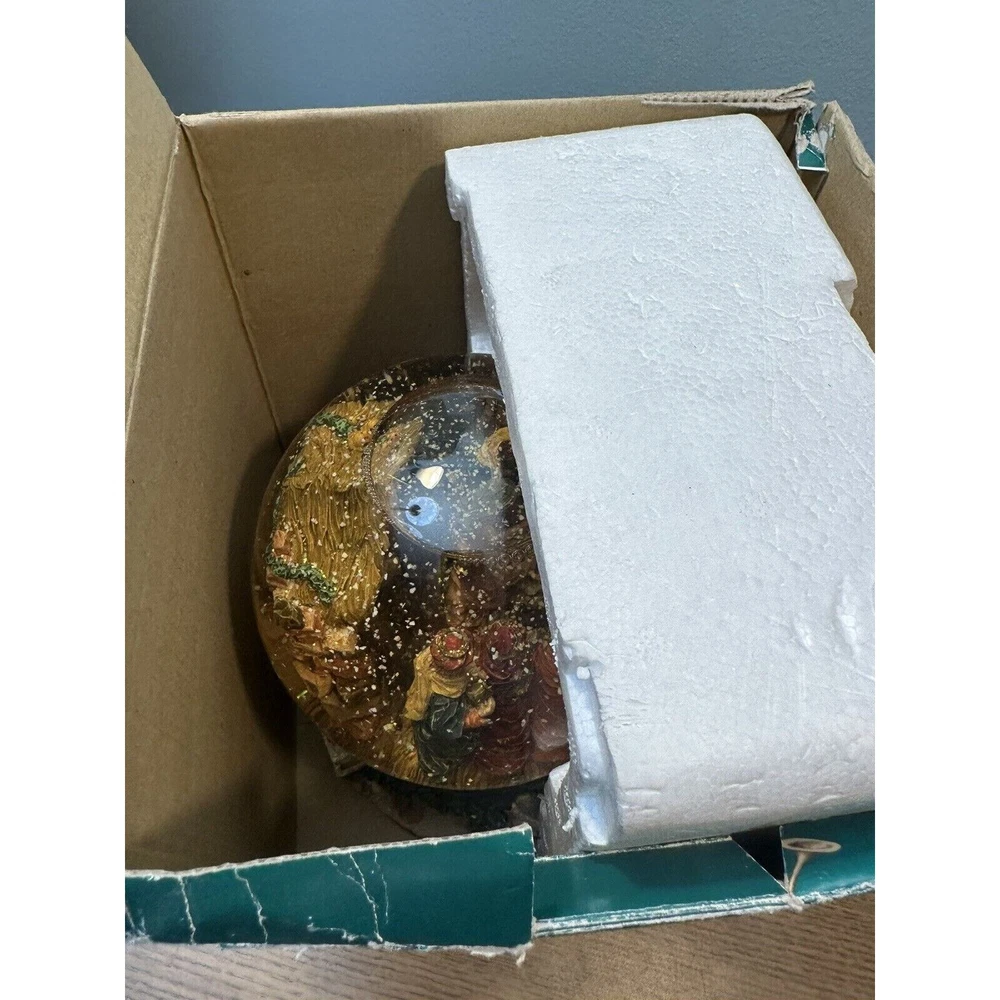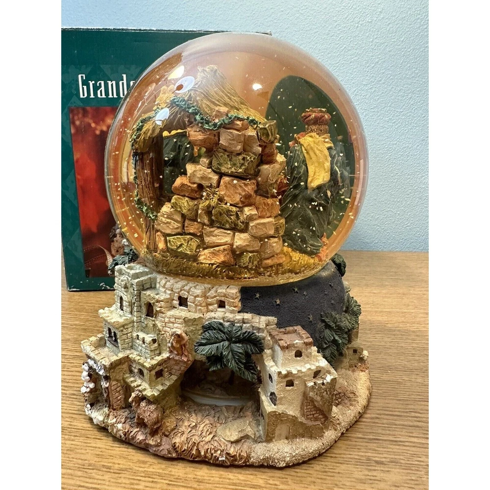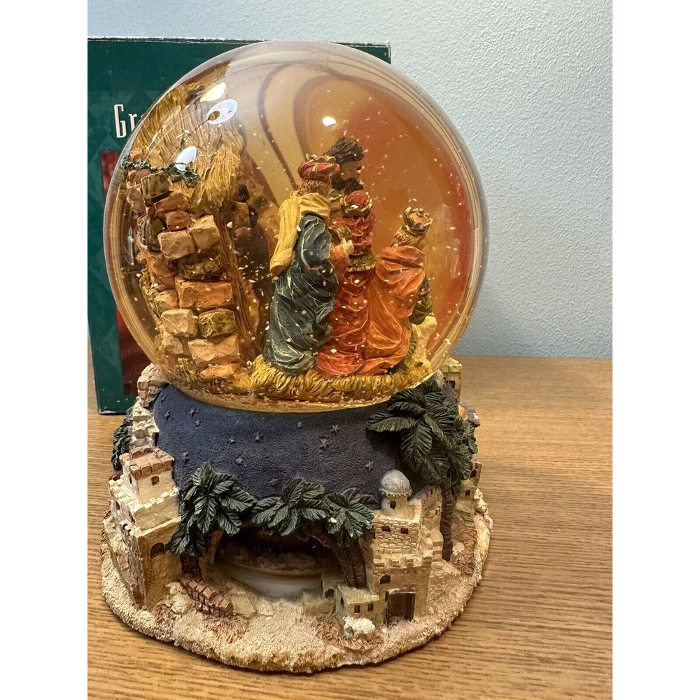 This vintage Grandeur Noel snow globe is sure to fill your Christmas season with joy. The globe features a beautiful nativity scene with a mix of materials including glass, ceramic and porcelain.