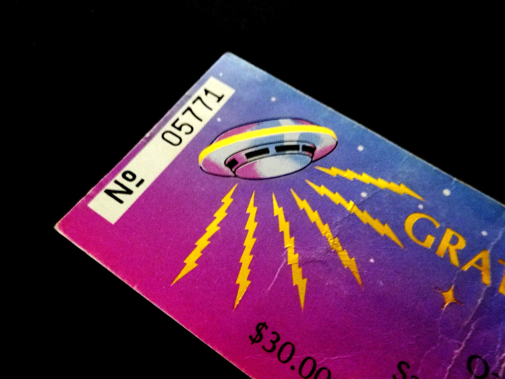 Grateful Dead Ticket Stub : 1988 : 1988 - 1989 New Years Eve ! : December 31, 1988 ( 12/31/88 : 12/31/1988 ) : Oakland Coliseum Arena - Oakland, California ( CA ) : 1988 Grateful Dead Productions, Inc. / Grateful Dead Ticket Sales, Inc. ( GDP / GDTS ) : Used GDP, Inc. GDTS Mail Order Ticket ! ( No. 5771 ) : The 1988 ! New Year's Eve Show !! - at the Oakland Coliseum !!! Grateful Dead " New Years Eve ! " Ticket Stub ... for the 1988 - 1989 New Year's Eve Show !!! at the Oakland Coliseum !!!!! Dead Fans !!! Talk about a 35-Year Old ! " New Years Eve ! " Dead Ticket !! that is Rockin' one of the Most-Awesome ! G.D. " New Years Eve " Ticket Designs of All-Time ! --- the Gold-Foil Lightning-Bolted UFO Flying Saucer Spaceship !!!!! And, what an Intergalactic ! '88-'89 New Years Eve Dead Show this one was - offering the Very 1st notes, tones & songs ... for the ' Super-Intergalactic ' 1989 Grateful Dead " Monster " Touring-Year - right in Oaktown ! at the Deadhead's one & only Oakland Coliseum !! Wow ... I mean 1989 Grateful Dead !!!!! Could never-ever say enough about it, and I still can't - as heck ... I'm just still getting started ! Well, how's this for starters ... Jerry Garcia !!!!!!! As This-Guy was on a straight-up Mission ! to bring the G.D. Live Heat ! in '89, and just kept doing it - Spring Tour, Summer Tour, Fall Tour, Winter Tour ... I mean you name it. I'm sure some of it had to be the whole 'near-death' thing in '86, obviously ... but Jerry was 47 here, and he was playing like he was 27 again - but ... no joke, even Better !!! I mean you only get better in Rock & Roll really, if you are truly one of the Greats ! And ... just how many Guitar Players really had the ideal ' chance ' to deliver for that long, for so many Rock & Roll, and Rock & Roll " Business " type reasons ... my point being something like this --- Jimmy Page got to play like what ? ... only 12-years with Zeppelin ? And, how many years did Iommi really-get, when you account for all of the on & off ' breaks ' ( & break-ups ) by the Black Sabbath(s) - including the Ozzy unit, the Dio unit, and also the ' other ' units. And Jerry ? - well, he got 30-Years ! with the G.D., and as far as I'm concerned ... this 1989-1990 Touring pocket, was indeed a Grateful Dead " Prime " Era - the tail-end of the " Brent-Era "... and arguably, in many ways you can easily argue - it " Was " the Ultimate-Prime ! of the Grateful Dead ' Live ' from a holistic standpoint - with ' all ' things considered. And, the simply fact is ... Jerry ! knew-it, and he got after it in 1989 Harder ! then in any other recent Dead Touring Year ... as you'd really have to go back all the way to 1985, and the " Twenty Years So Far ! " G.D. Tour ... and the Push ! Just think ... 6/30/85 ! Ha !! So yeah ... as this Ticket ! most-definitely represents this '89 G.D. Gateway, and for this New Year's Eve Celebration - in Oaktown ! - Jerry even had Clarence Clemons in tow ! ... " The Big Man " ... & " The Big ! Man " ... right ??! " Big-Men " times Two !! So ... Let The Good Times Roll ! right of the bat - then with no-time-wasted ... Franklin's Tower !! Wang Dang - West L.A. - a late-set Cold Rain, a Cassidy > Don't East 1st Set closer ... and it's Way ! more then On !!! Sugar Mag > Touch ! ( for Bill !! ) to open Set II - with Women Are Smarter Rockin' ! - and Gimmie Some Lovin' ... Rollin' !! - Sweet ! versions of both Terrapin & The Wheel ... Ace on the Watchtower ! -- and then ... The-Dew !!! >>> Sunshine Daydream !!!!! One of the Most ! ' underrated ' N.Y.E. Dead Shows that there-is ! But, it's not underrated to me ... not one single bit ! Red-Hot ! ... and so ' Noteworthy ' just about Everywhere !! Because after all ... just like the Sticker in the Oaktown ! Lot once did say ... " We Are Everywhere " !!! And, that's not-even all she wrote ... as the Boys then threw-down a " Set II " - delivering Wharf Rat > GDTRFB > One More Saturday Night !!! Because yeah ... it wasn't ' just ' a " New Year's Eve " Show ... Yeah Bobby !! Ha ! And Good Ol' Bill Graham ? ... he must-have ' predicted ' it - as after all ... he did ride-in on a Giant " Mirror Ball " !!! Go Bill !! Grateful Dead !!! - New Year's Eve '88-'89 !! - in Oaktown !!! ... Enjoy !!!!!! Grateful Dead : New Year's Eve '88 - '89 : 12/31/1988 : Oakland Coliseum Arena - Oakland, California ( CA ) : Setlist >>> Set I : Let The Good Times Roll, Franklin's Tower, Wang Dang Doodle *, West L.A. Fadeaway*, Masterpiece, Cold Rain & Snow, Cassidy > Don't Ease Me In Set II : Sugar Magnolia * > Touch Of Grey * > Women Are Smarter * > Terrapin Station > Drums ** > Space > The Wheel > Gimmie Some Lovin' > All Along The Watchtower > Morning Dew > Sunshine Daydream Set III : Wharf Rat > Goin' Down The Road Feelin' Bad * > One More Saturday Night * > * = with Clarence Clemons / ** = with Baba Olajunji, Sikiru Adepoju & Kitaro > Show opened by Peter Apfelbaum & the Hieroglyphics Ensemble, and Tom Tom Club > FM Broadcast on KFOG-San Francisco ( Radio Broadcast ) > Bill Graham rides in on a giant Mirror Ball ! Item Condition : This Vintage Original ( Genuine / Authentic ) Grateful Dead ( GDTS ) Used Mail Order Ticket for the 1988-1989 New Year's Eve Show on December 31, 1988 ( 12/31/1988 ) at the Oakland Coliseum Arena in Oakland, California ( CA ) is in Good condition - showing heavy show-used creasing & wear (please see all photos). Ticket is torn on the perforated edge, and has significant creasing & medium surface/edge wear (please see photos). This Ticket saw the Show, and looks fairly good, for seeing this Show - over 30-Years Ago ! ' Good ' condition, all across the board. Please see all photos & close-up photos provided to view the actual condition of this item. Photos included are of the actual item you will receive. A Vintage-Original G.D. 1988-89 New Years Eve Ticket Stub !!! ... Enjoy !!!!! Size : 2 Inches -by- 4 & Five-Eights of an Inch = 2 " x 4 5/8 " ( approximately ). * Please Note * : This Ticket has heavy crea
