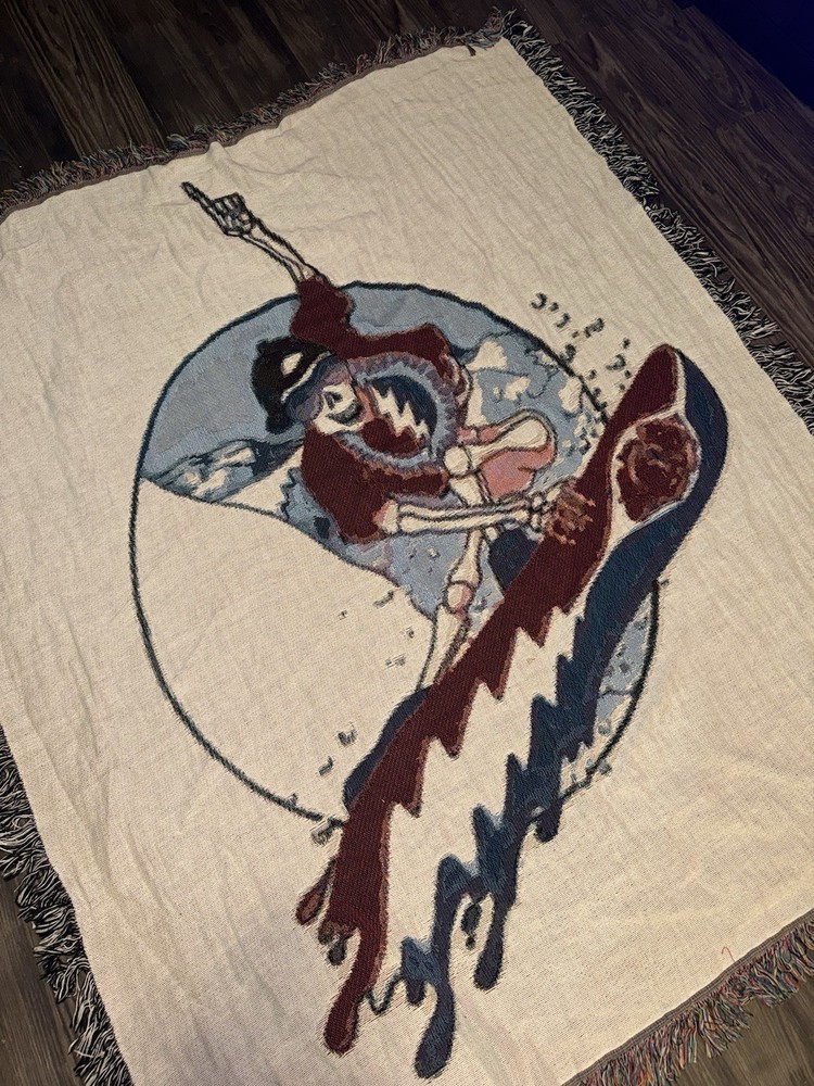 Grateful Dead Hippie Snowboard Vintage Throw Blanket Tapestry 60x50 Snow Woven