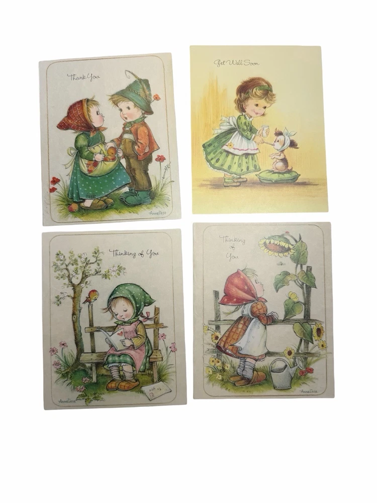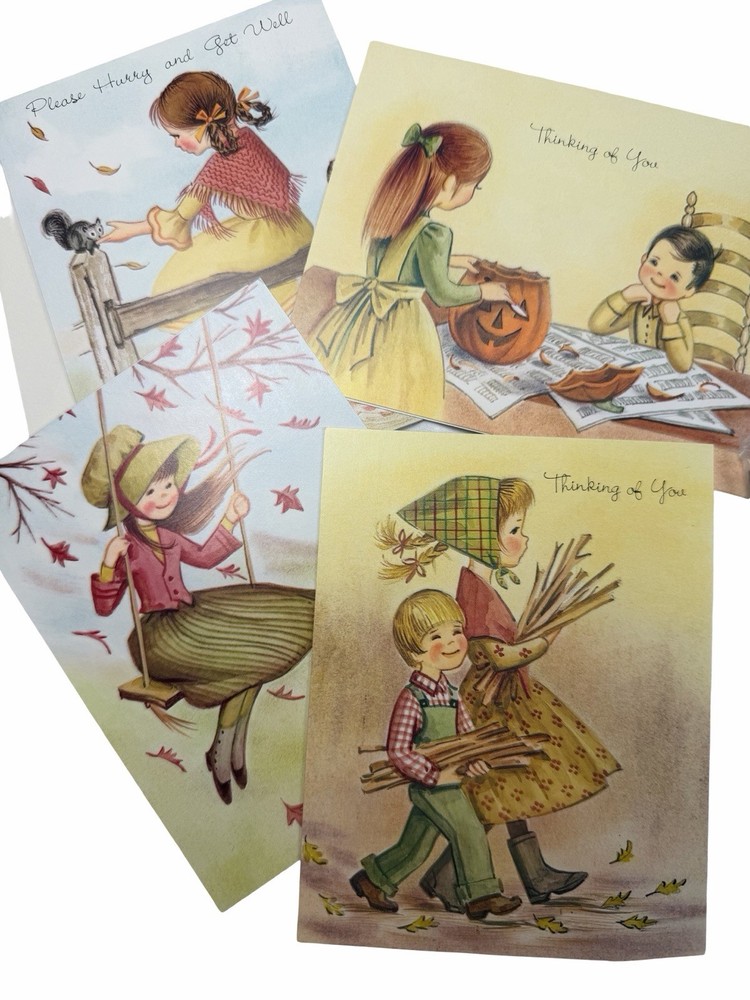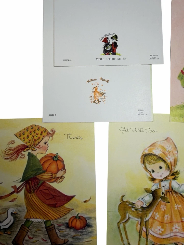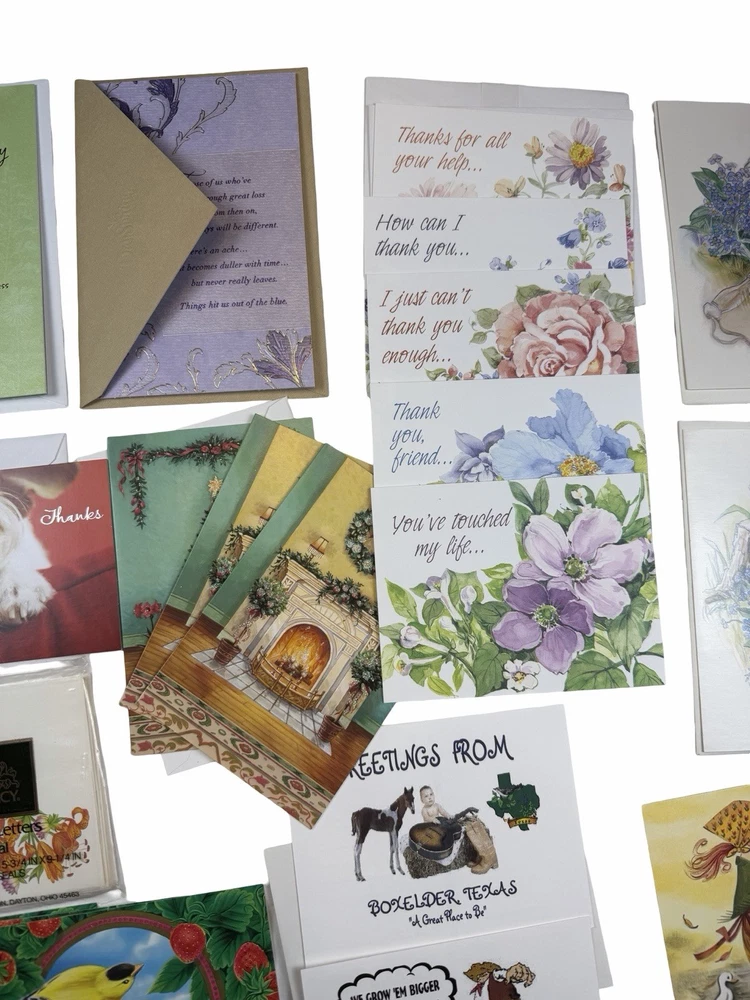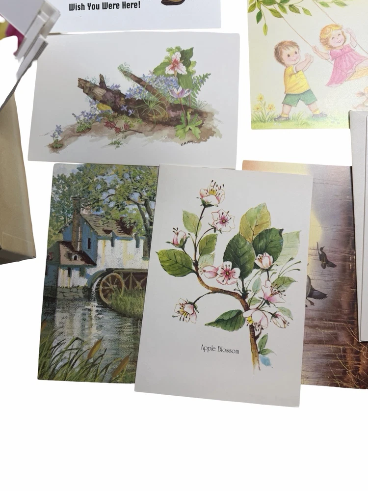 Vintage greeting card lot from an estate, featuring a variety of unused cards with charming illustrations and themes. Includes: * “Thinking of You,” “Get Well,” “Thank You,” Sympathy, and general greetings * Adorable vintage-style children illustrations * Floral, seasonal, and scenic designs * Fold-up floral stationery set * Original vintage “Rainbow Rhapsody” card box (included) Condition: * Cards are unused with no writing * Most include original envelopes * Estate find – may show light age-related wear, corner bends, or slight discoloration * Sold as-is as a mixed vintage lot Great for: * Junk journaling / scrapbooking * Crafting or ephemera collectors * Vintage paper goods collectors Please review all photos for condition and variety.