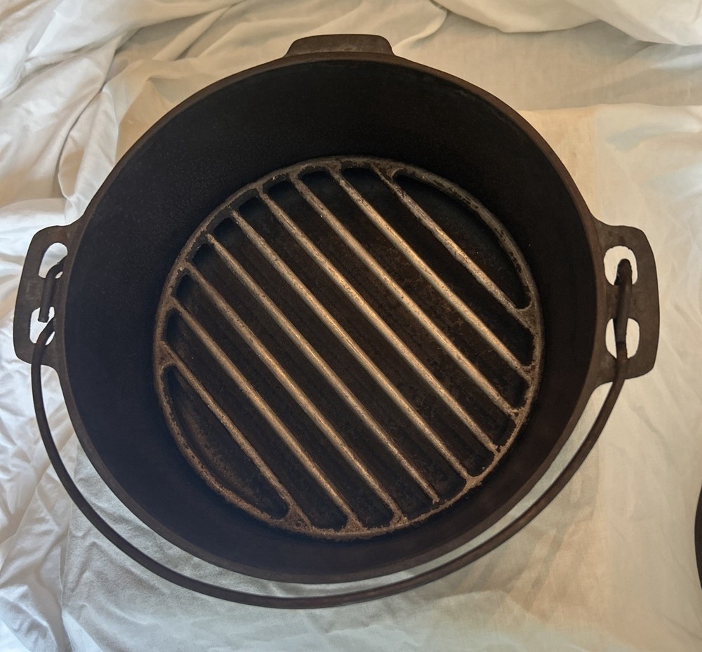 The Vintage Griswold Cast Iron No 8 Tite Top Dutch Oven is a rare collector's item that comes from the United States, specifically manufactured between 1920-1949. This two-piece set includes a round Dutch oven made of durable cast iron in a classic black color. With the brand being Griswold, known for their quality kitchen products, this original piece features a lid and is compatible with multiple stove types including induction, electric, and gas. The vintage nature of this Dutch oven adds to its collectible value, making it a sought-after item for cooking enthusiasts and collectors alike.