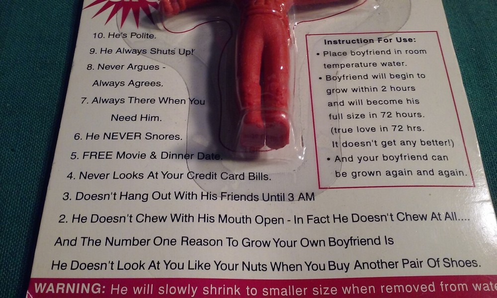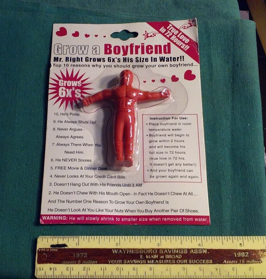 GROW A BOYFRIEND Vintage Funny Party Gift Gag Unused Unopened in Package NOS, figure measures 3" in package.