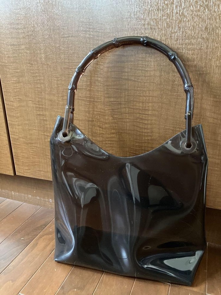 Vintage Gucci Bamboo Handle Vinyl Shoulder Bag