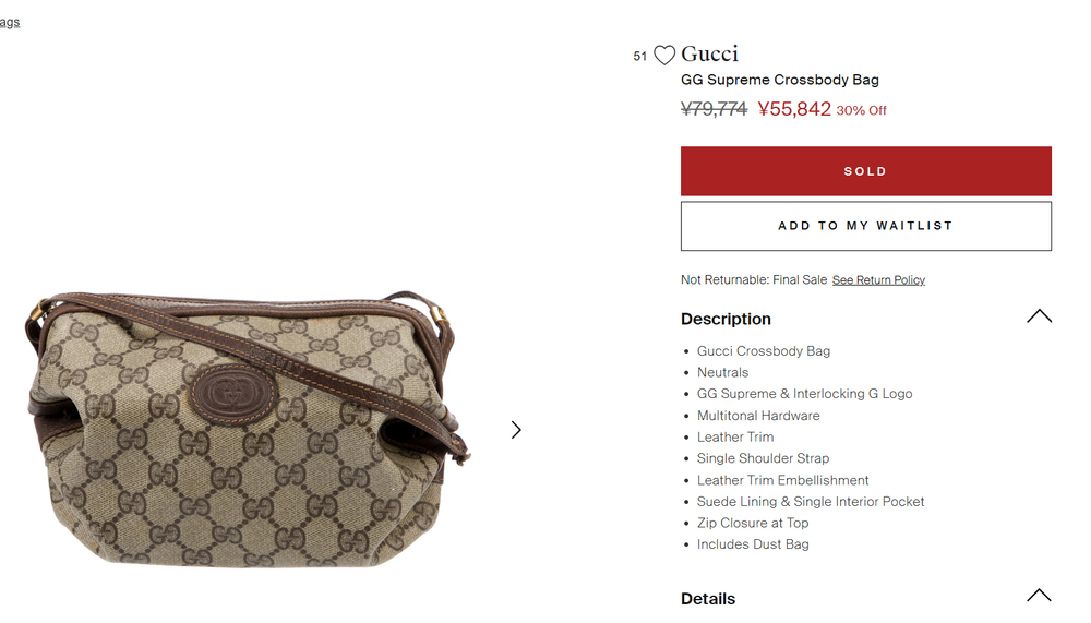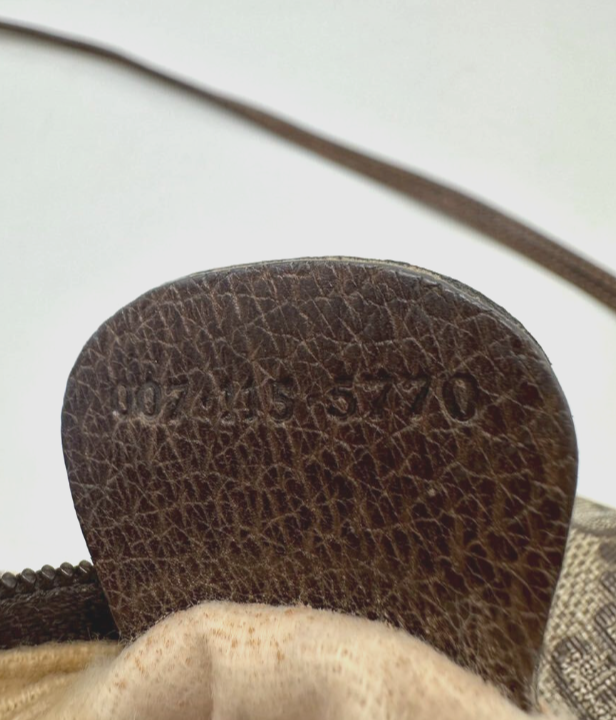 Gucci GG Monogram Supreme Crossbody Pouch Bag RRP $550 AUD on Therealreal Crossbody Bag with GG Supreme canvas & leather Interlocking G Logo on front Leather Trim detailing Single Shoulder Strap Fabric Lining & Single Interior Pocket Serial number on inner tag Approx size: W20cm, H14cm, D10cm, Shoulder Strap Length: 118cm Light discoloration on inside lining, signs of wear on the hardware, the leather parts have signs of wear and have been lightly touched up.