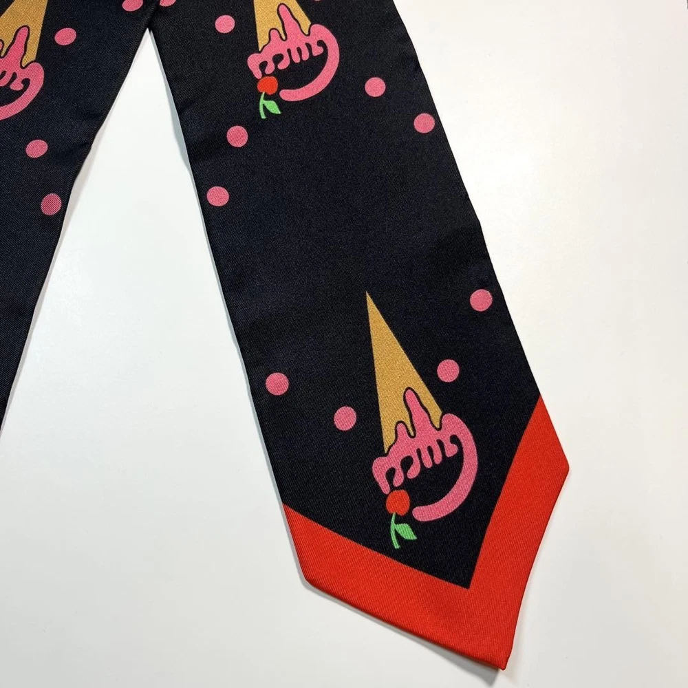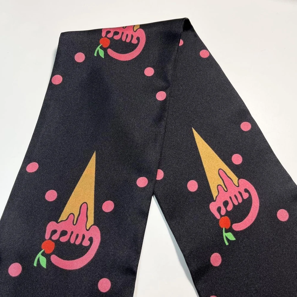 Absolutely love this unique Gucci scarf! The playful ice cream and polka dot design adds so much charm, and the quality is top-notch. The neck bow detail makes it stand out—perfect for adding a fun twist to any outfit. Super soft and lightweight, great for layering. Shipping from Japan was fast, and the seller was very responsive. Highly recommend for anyone looking for a statement accessory!