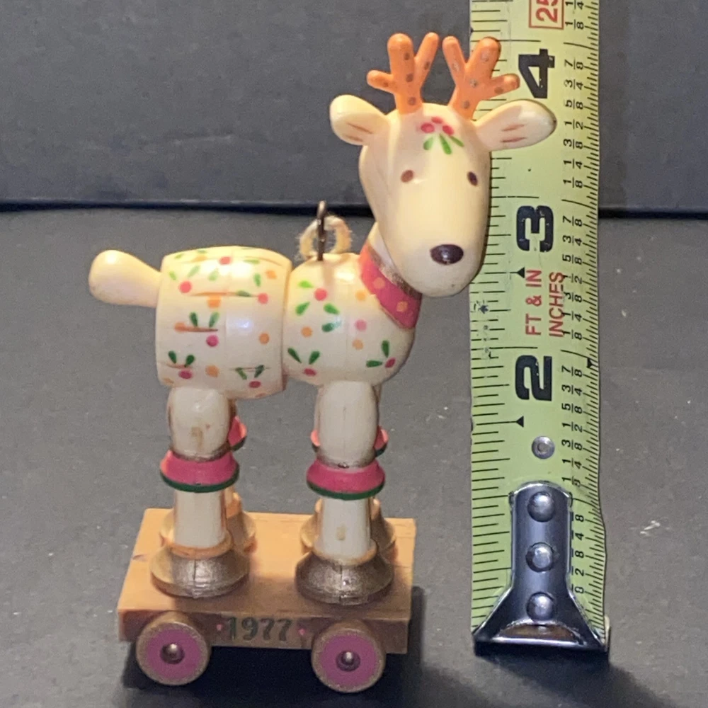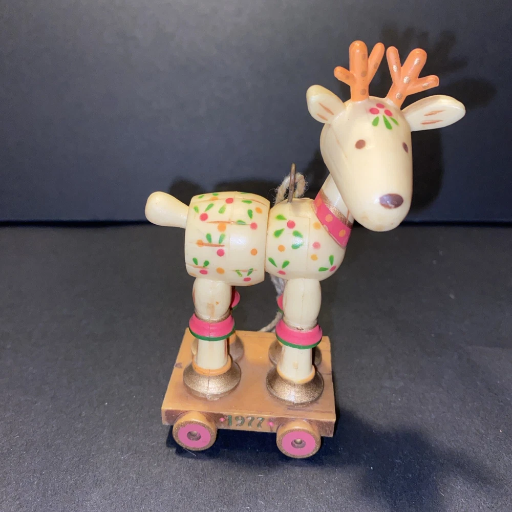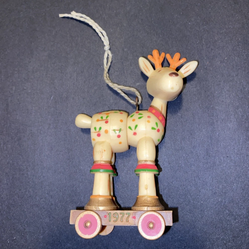 Original/Licensed Reproduction:OriginalCountry/Region of Manufacture:Hong KongType:OrnamentColor:MulticolorTheme:ChristmasOccasion:ChristmasCollection:OrnamentsVintage:YesNumber of Items:1Features:VintageSet Includes:OrnamentSubject:ReindeerBrand:HallmarkYear Manufactured:1977Shape:Reindeer
