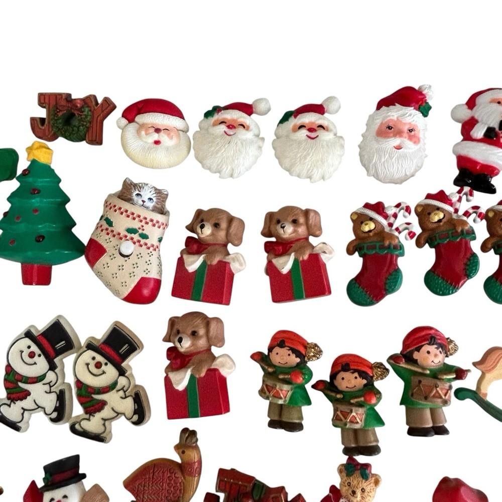 Vintage HALLMARK Variety Lapel Pins Various Holidays Lot of 101. Good pre-owned condition with normal vintage wear, a couple have light discoloration, rubs on color, see photos for details. Includes: 7 St. Patrick's Day, 32 Christmas, 6 Easter, 25 Halloween, 8 Thanksgiving, 10 Valentine's Day, 13 Misc. (SR)