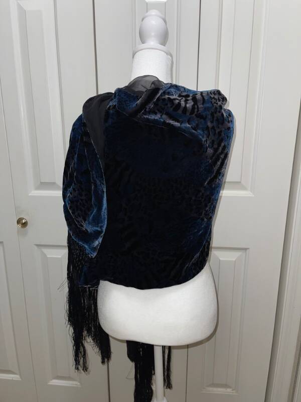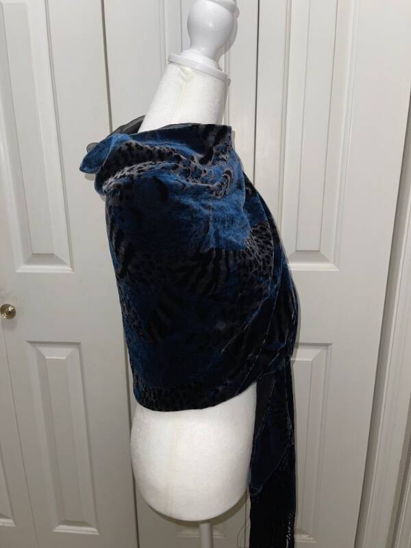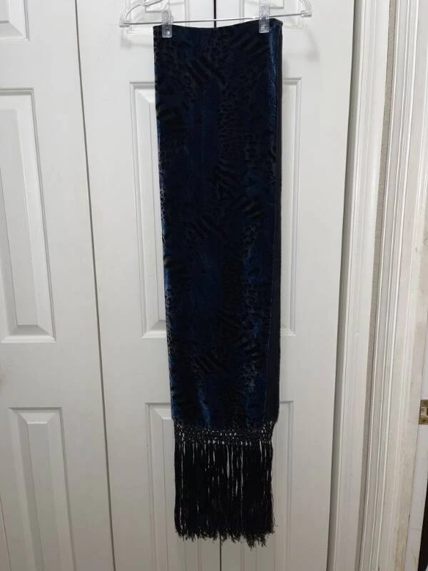 Women's Vintage HELEN FABRIKANT Black and Blue Animal Print Rayon Silk Scarf Excellent Used Condition This is one beautiful scarf! Approximate measurements: 72" long and 22" wide Material: Scarf front is 82% rayon and 18% silk; Lining is 100% silk Handmade fringe Dry clean only Smoke free home (but we do have three wonderful dogs) Please note…I am not a true “store” like the ones found at a shopping mall or on-line. I am a retired elementary teacher selling as a hobby. I ask that you read entirely my listing before purchasing to avoid returns. Please be aware of postal delays, too. Thank you! For all Buyers and Bidders : Thank you for your interest in my item. I am a Christian women and also a wife, mom, and 3rd grade teacher who is trying to earn some extra money to support my children's athletic endeavors (Both seniors-one high school and one college). I look forward to doing business with you! Have a wonderful blessed day! See my other listings for more great items! Payment and Terms : I only accept PAYPAL , so please make payment as soon as the auction has ended or within three days of the end of the auction. Due to issues, I will not accept eChecks and will cancel any orders paid with one. Once your payment is cleared, I will send your item within three business days. If your item is not paid for within the stated time frame, E-bay will automatically open an "unpaid item" case. I know that we all lead busy lives, but it benefits us both if you pay on time. Thanks. Shipping : I will combine shipping for multiple purchases. If you purchase multiple items, please wait for an invoice so I can send you the adjusted payment for your item and shipping costs. Also, remember that shipping costs include total size of package, weight of package, my shipping materials, and destination. If your item is under 16 oz., I will mail first class. On other purchases, I only mail USPS Priority Mail for speed and tracking purposes. The sooner you pay, the sooner I will ship your item(s). Also, please note that once your item has been shipped, it is now in the "hands" of the postal service. Please give honest feedback regarding shipping times as I cannot control how long it really takes to get to you. If there is a problem, please contact me and I will do my best from my end to resolve the problem. Buying or Bidding : First, please look closely and carefully at all the pictures and read the entire listings and descriptions. I use a Canon camera to take my photos and believe that they are of quality production. I also give as many details as I feel necessary to describe the item accurately. You may also extend a reasonable offer to me. If I accept, I will send you a return offer that you can accept or deny. Returns : As of now, I will no longer accept returns . I am one person who does Ebay as a hobby, and I am not a true "store." I do my best to explain all the necessary detail (both good and bad) for my items. Please read and measure carefully. With that being said, if you do have a problem, you will need to contact me within 3 days of receipt of your item to work out any problems . Also, I'd appreciate it if you reach out and contact me before leaving any negative feedback, as that is only fair in this type of business. Condition of Merchandise : Although I am a non-smoking home, my merchandise comes from a variety of places, and I cannot vouch for the item's exact whereabouts before I bring it to my store. Please note if I laundered the item, as I may or may not launder my items. If you are sensitive to laundry detergents, them please reconsider buying my items. Fit/Measurements : Please remember that the measurements listed are for the garment, not you. To be sure of the fit, measure a similar garment that fits you will and compare measurements. Be sure to allow extra room for jackets, coats, and outwear. Feedback : I encourage you to leave me feedback so I know that your purchase arrived safely and that you are satisfied with your item. After you leave feedback for me, I will do the same for you. Please note any vacation settings and postal delays due to weather. Customer Satisfaction : I hope that you are completely satisfied with your purchase. If you are not satisfied in any way, please contact me before leaving any negative feedback, so I can address your concern and work together with you to remedy the situation. I believe in the concept of being a TEAM-Together Everyone Achieves More...even on E-bay. txzj pxzj1155 txzj-11 txzj-4 txzj19 txzj115