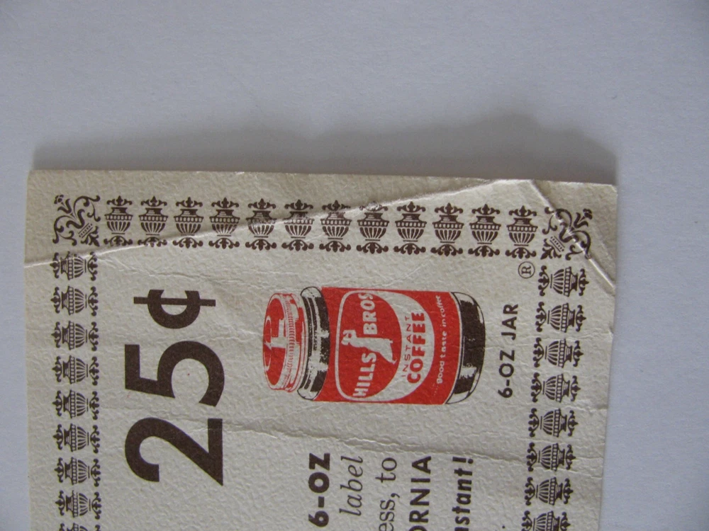 Vintage HILLS BROS COFFEE Manufacturers Coupon EXPIRED JULY 28 1957