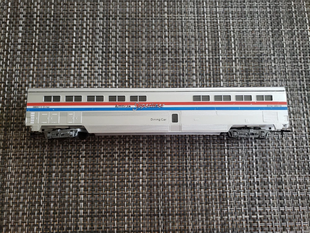 Here i have a cool looking Amtrak Superliner coach. No real fault or broken pieces. Light scuffs on the pin stripping. Couplers are intact. No interior or lighting. Overall not a bad little coach. This is a AS-IS sale, No returns. i do not offer any guarantees or warranties beyond eBay policy. I will always use combined shipping discount on multiple items. Please ask questions and inquire further photos, if necessary, before you place a bid on my items thank you.