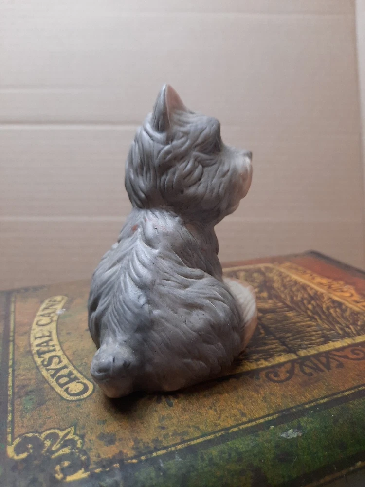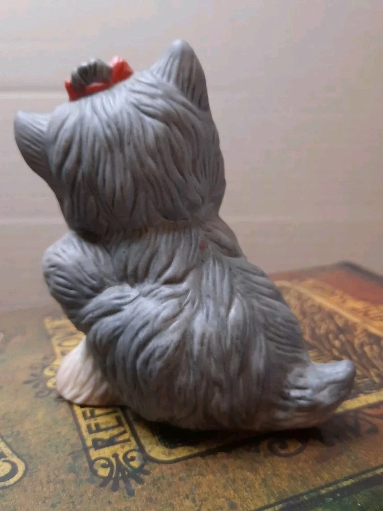 Add a touch of vintage charm to any room with this delightful Homco figurine. Crafted in the mid-90s, this ceramic and porcelain Yorkie figurine features a tongue-out expression and a red bow, capturing the playful spirit of the breed. Its brushed finish and all-over pattern make it a beautiful piece suitable for any furniture and room. This contemporary style figurine measures 4 inches in length and is unboxed, making it easy to display. It's perfect for both teens and adults who love Yorkshire Terriers and want to add a touch of nostalgia to their collection. Bring home this lovely piece today and add a touch of whimsy to your space!