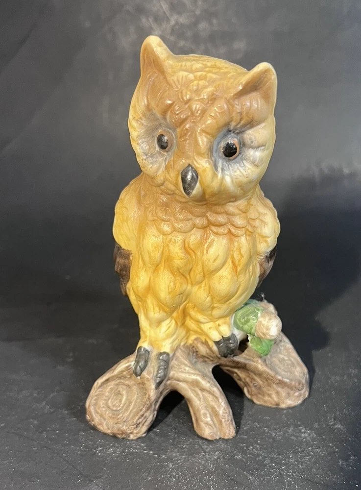 Vintage HOMCO Great Ceramic Porcelain Owl Perched on Log 5 1/2”