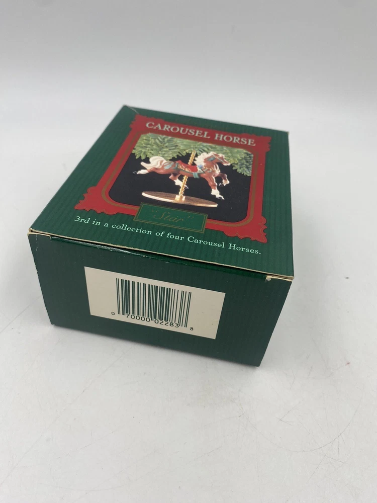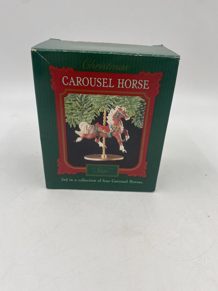 This vintage Carousel Horse STAR hallmark ornament is in very good condition. It is in the original box. The box is dated 1989. You get the actual item pictured so please look at the pictures and ask any questions before purchase
