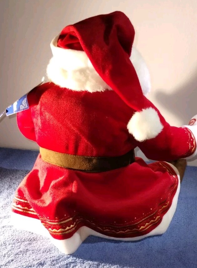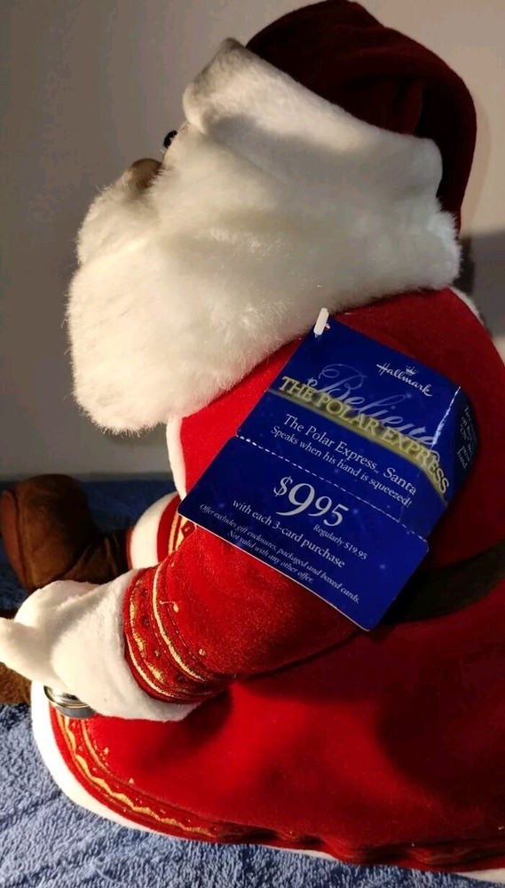 The Hallmark The Polar Express Plush Talking Santa Claus is a large, red plush toy from 2004. This vintage Santa Claus features a jingle bell and is retired, making it a collectible item. It requires 2 "AA" batteries (not included) to enable its talking feature, adding an interactive element to this Christmas-themed decoration. This item was manufactured in China and is perfect for fans of The Polar Express or collectors of holiday memorabilia.