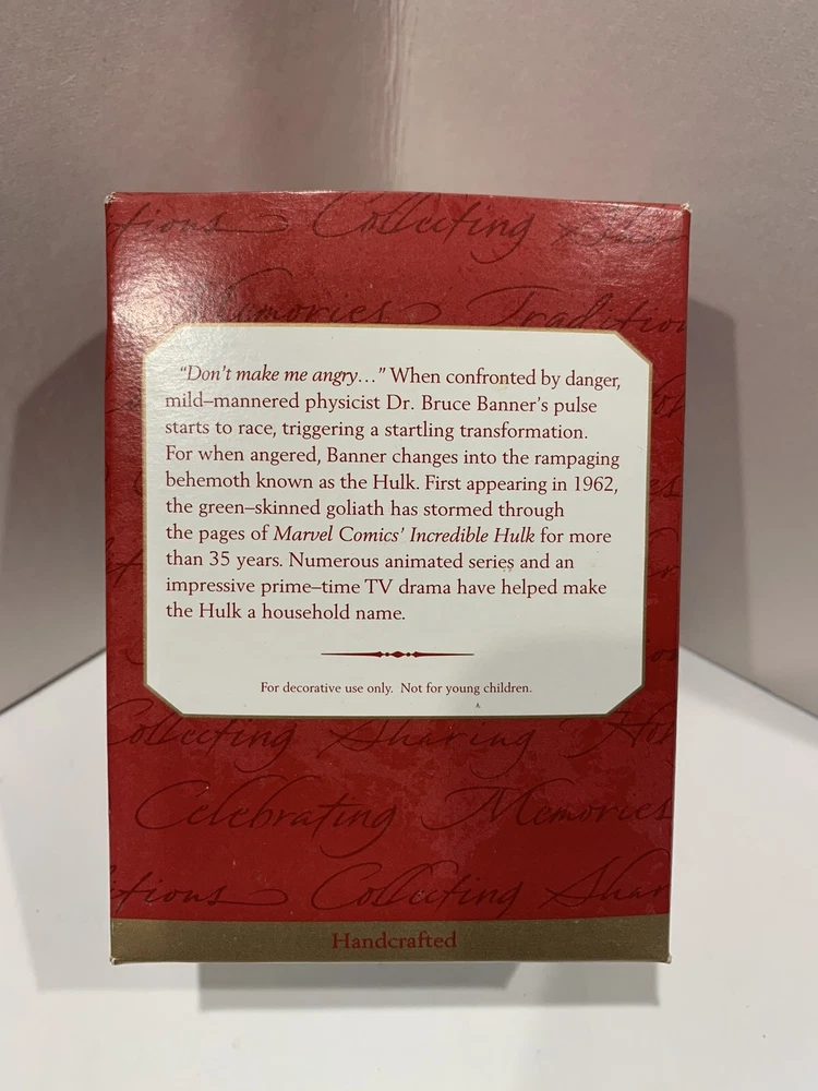 Features:VintageType:OrnamentCollection:OrnamentsYear Manufactured:1997Theme:SuperheroesFranchise:The IncrediblesBrand:HallmarkCharacter:Incredible Hulk