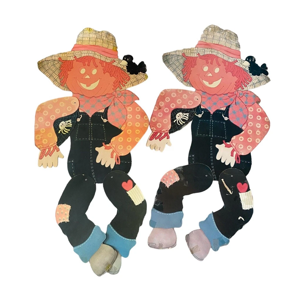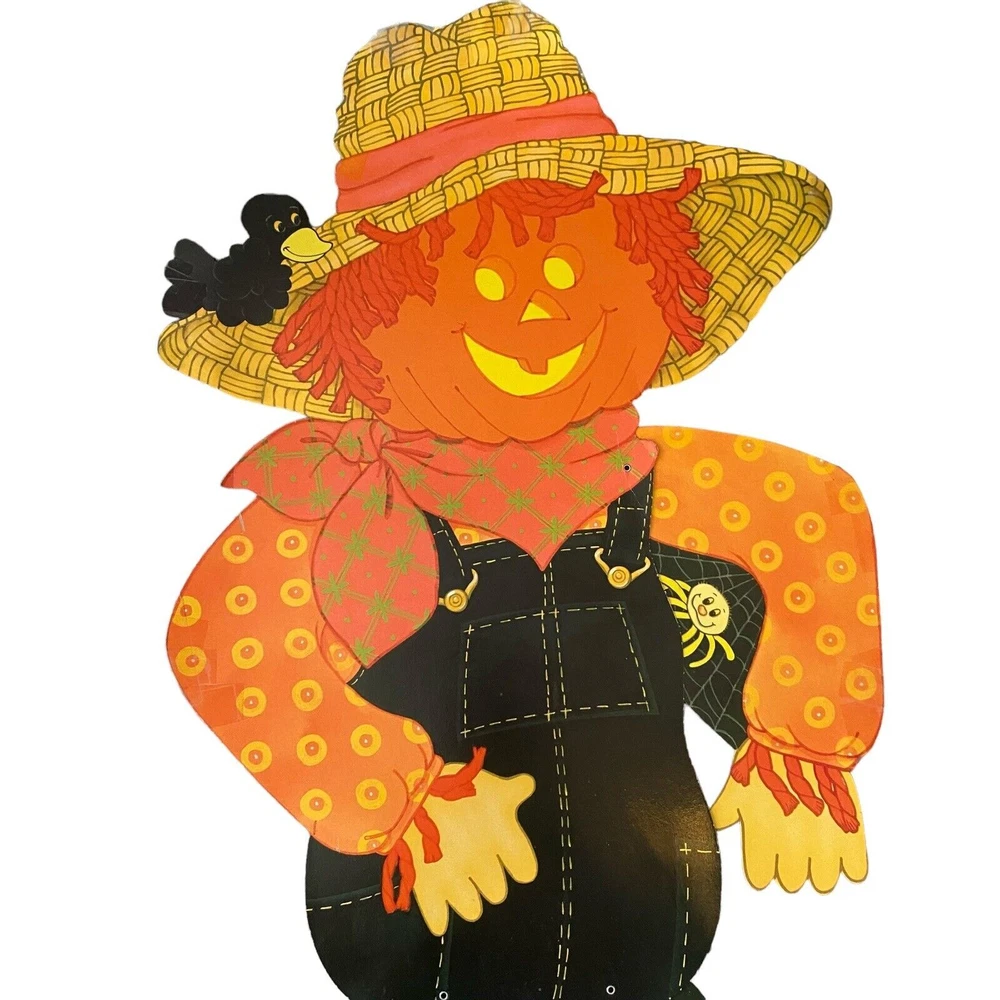 Vintage Halloween Scarecrow Large Mechanical Jointed Die Cut Window Fall Decor