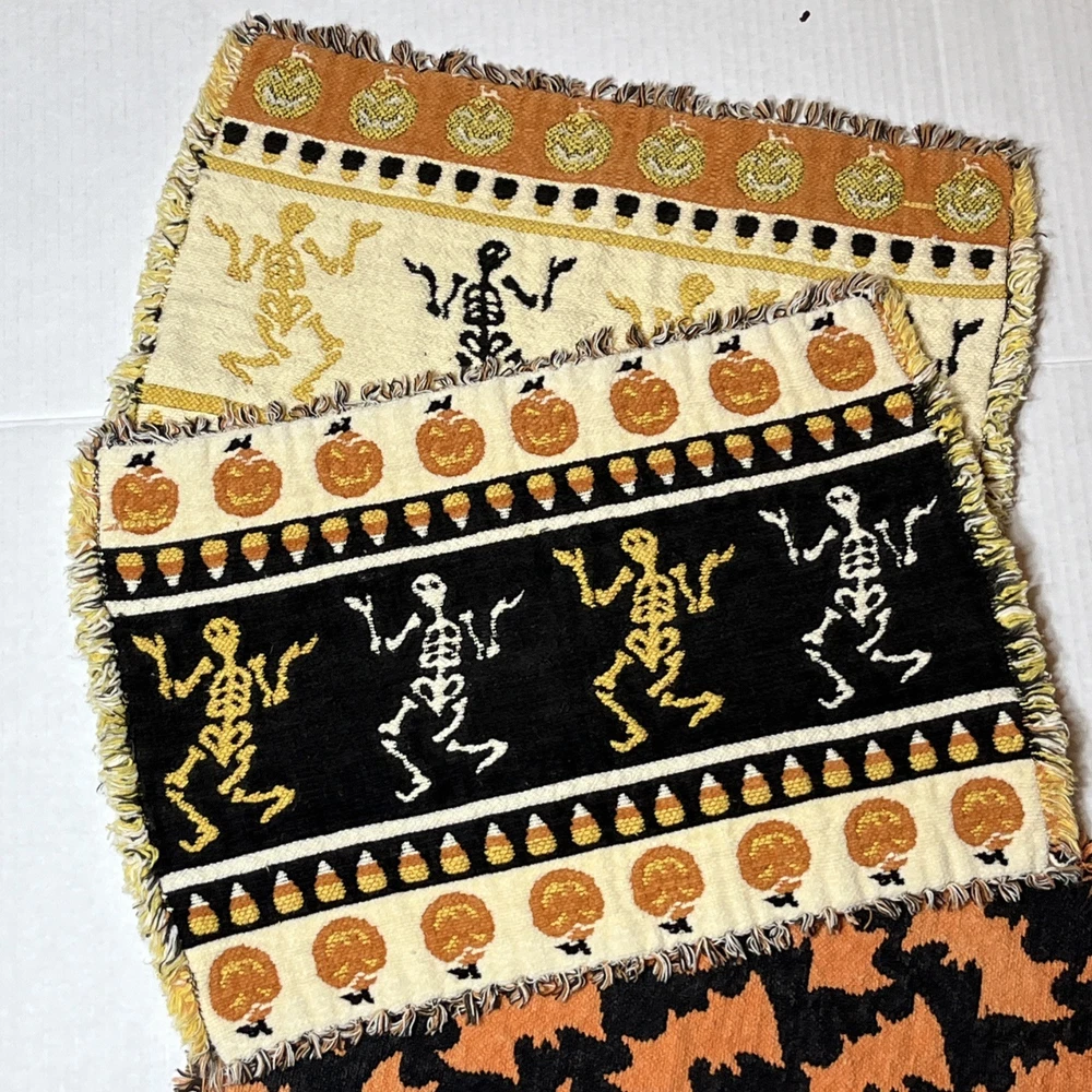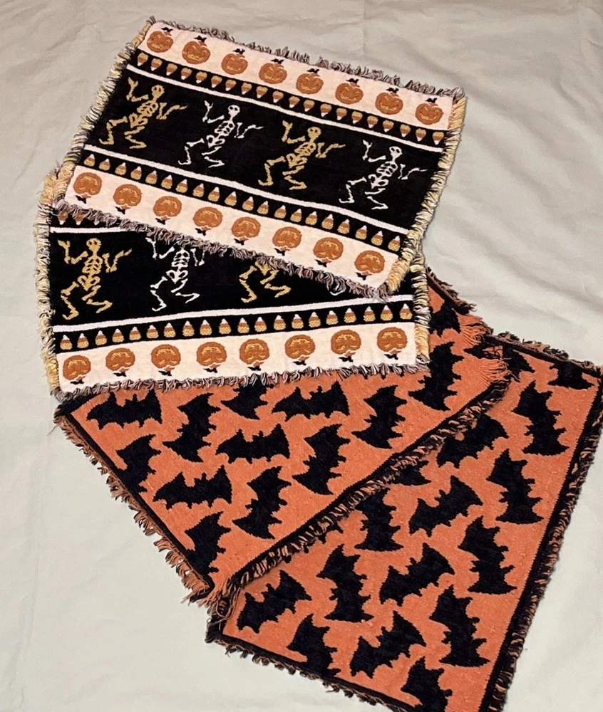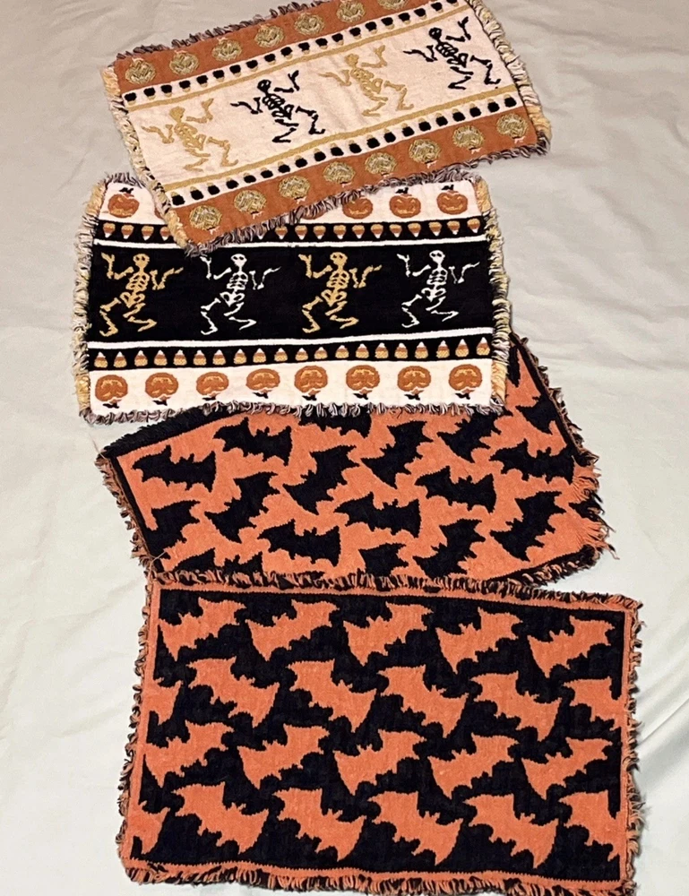 Comes As Pictured Double Sided placemats , Colors Are Reversed On Each Side - One Of The Bat Placemats Is Torn On Bottom Right Corner As Pictured - Lot of 4 “16 x 11 inches Great Condition Amy Questions Message Me