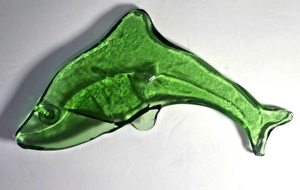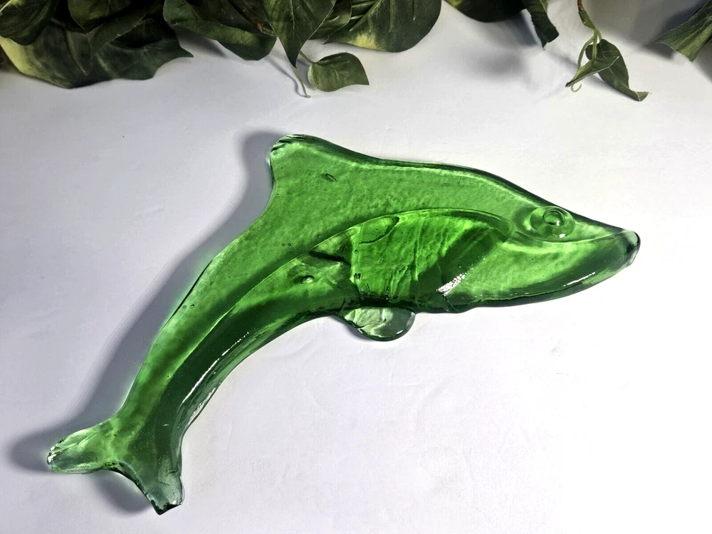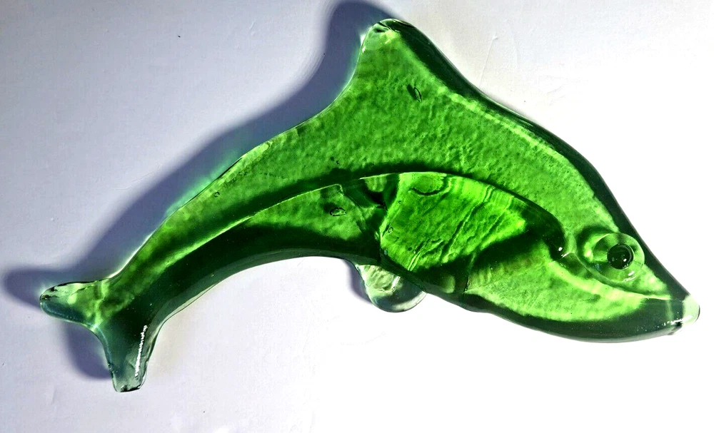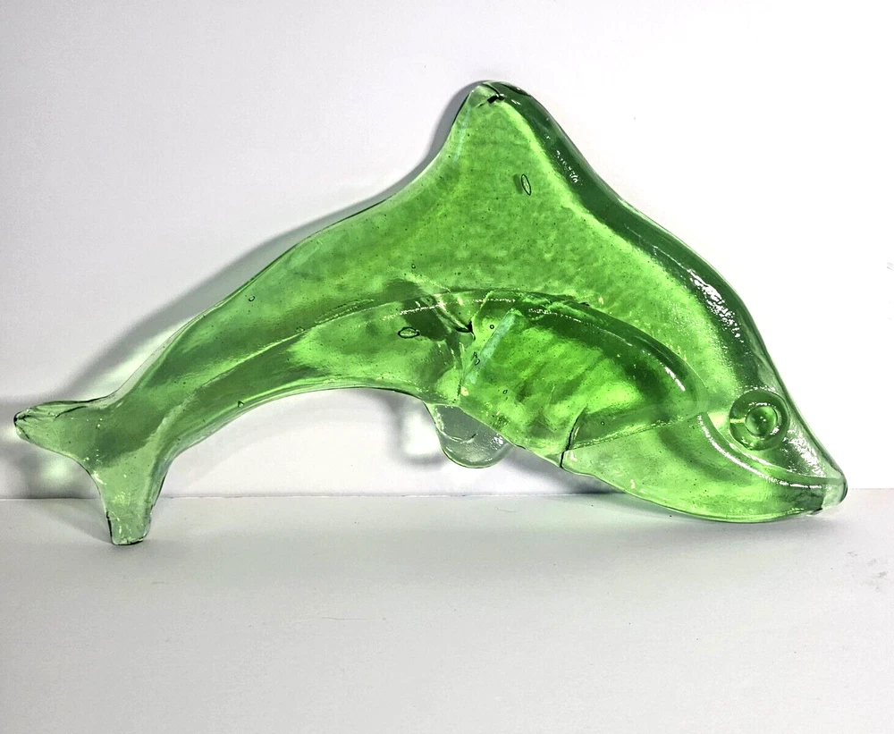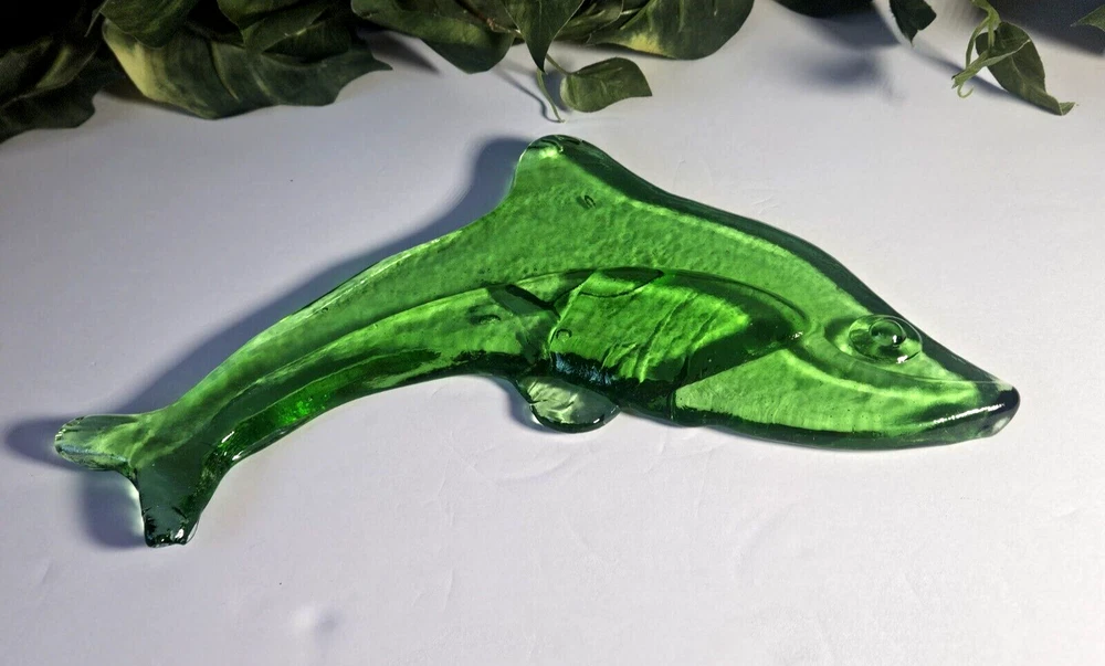 Vintage Hand Blown Green Glass Dolphin Figurine 11.5"L . This item is a must-have for anyone who loves collecting figurines, dolphins, or fish and marine life. Excellent condition - no chips, cracks, or fleabites. Please do not hesitate to contact me with any questions. Thank you for looking!
