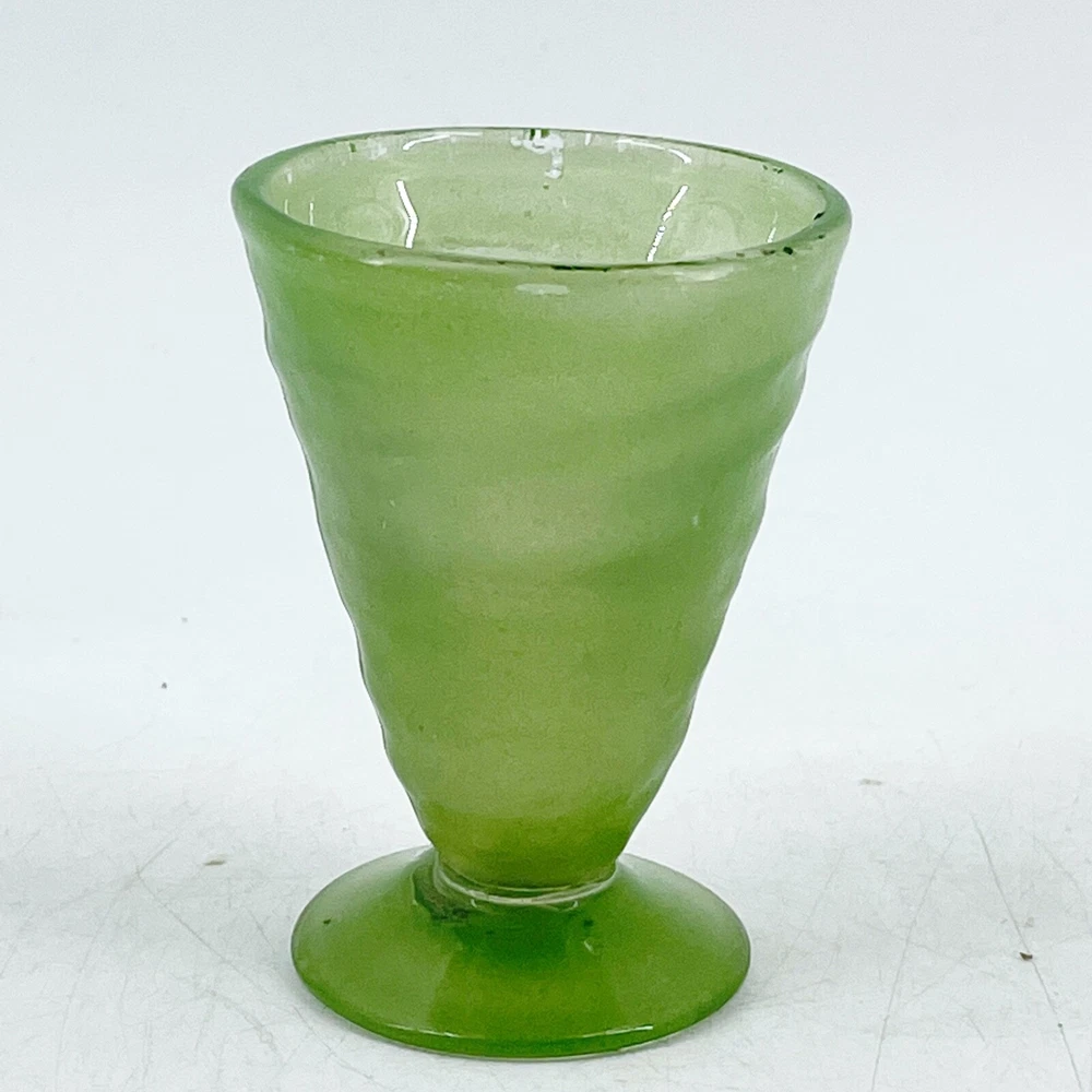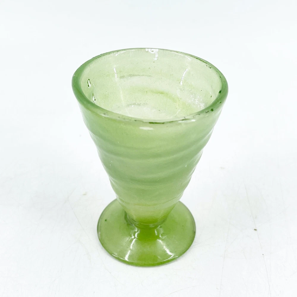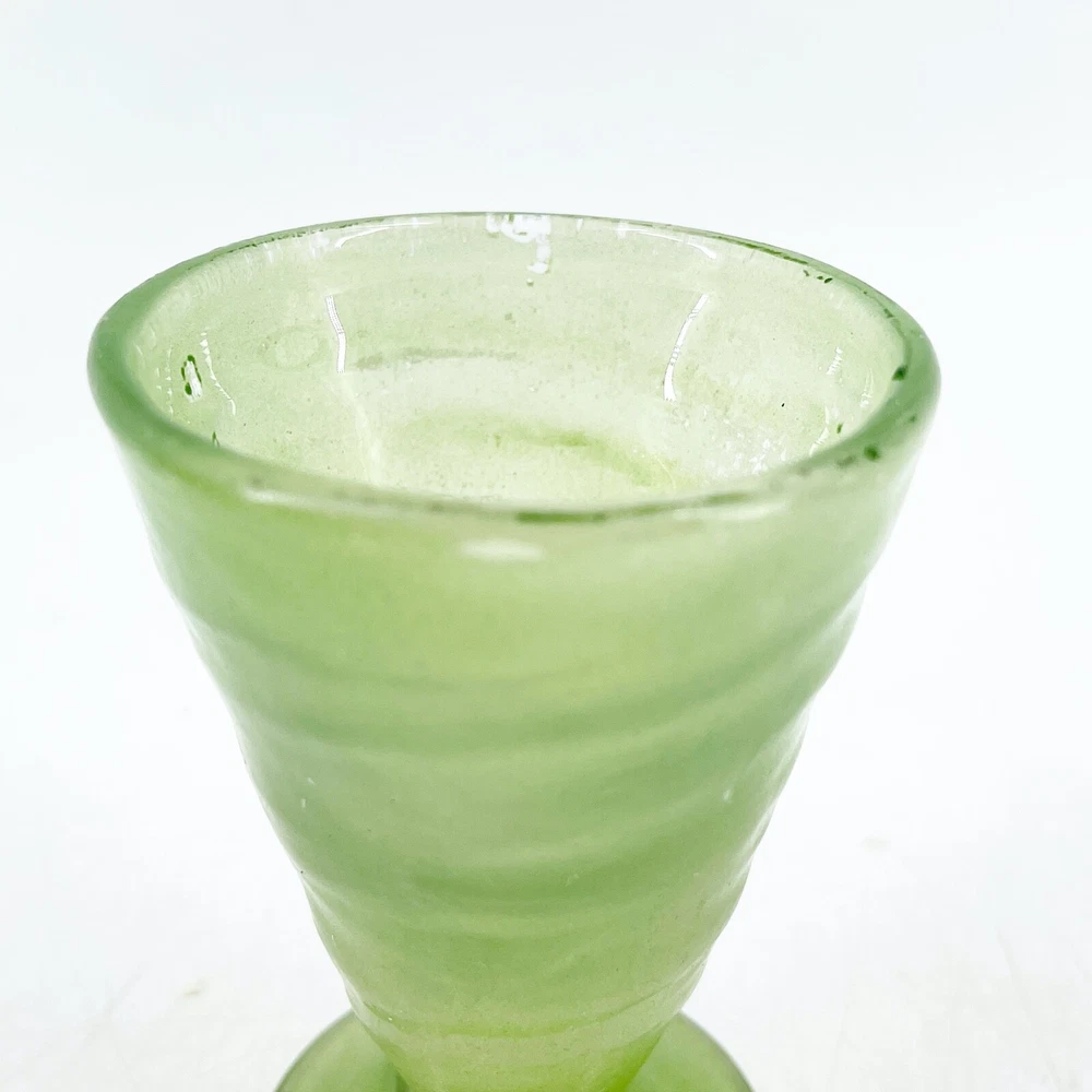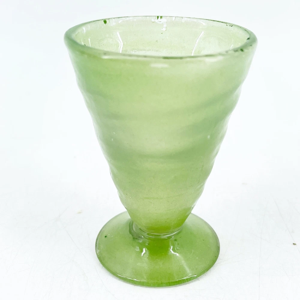 Vintage Hand Blown Swirl Art Glass Footed 4 Sherbet Tumbler Cup Green 2 1/4" diameter at top rim and 3 1/8" tall. Visible rough pontil on base.