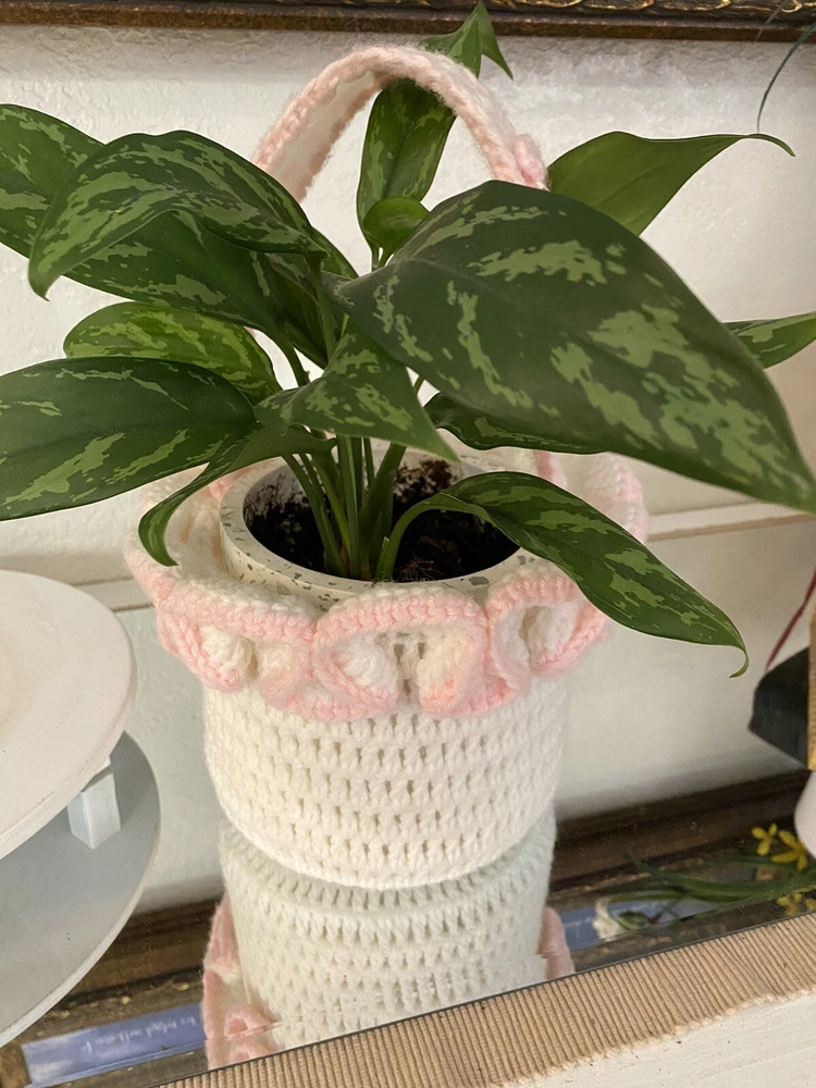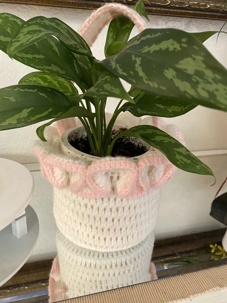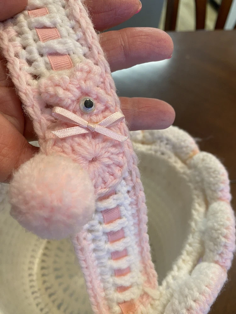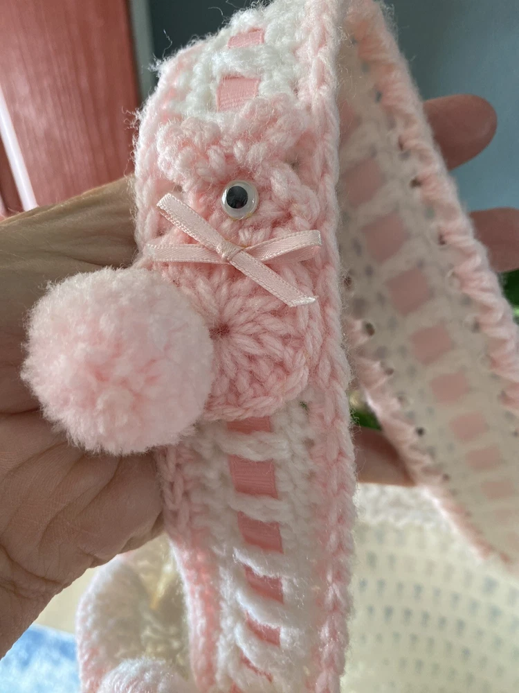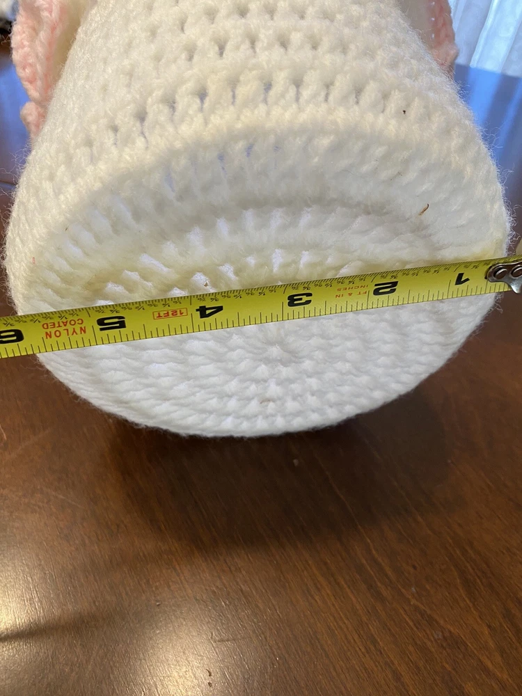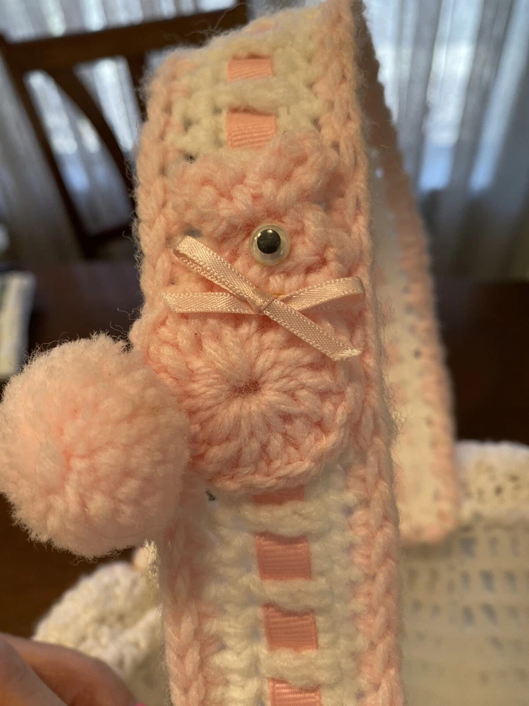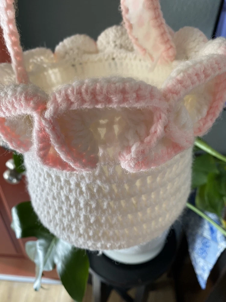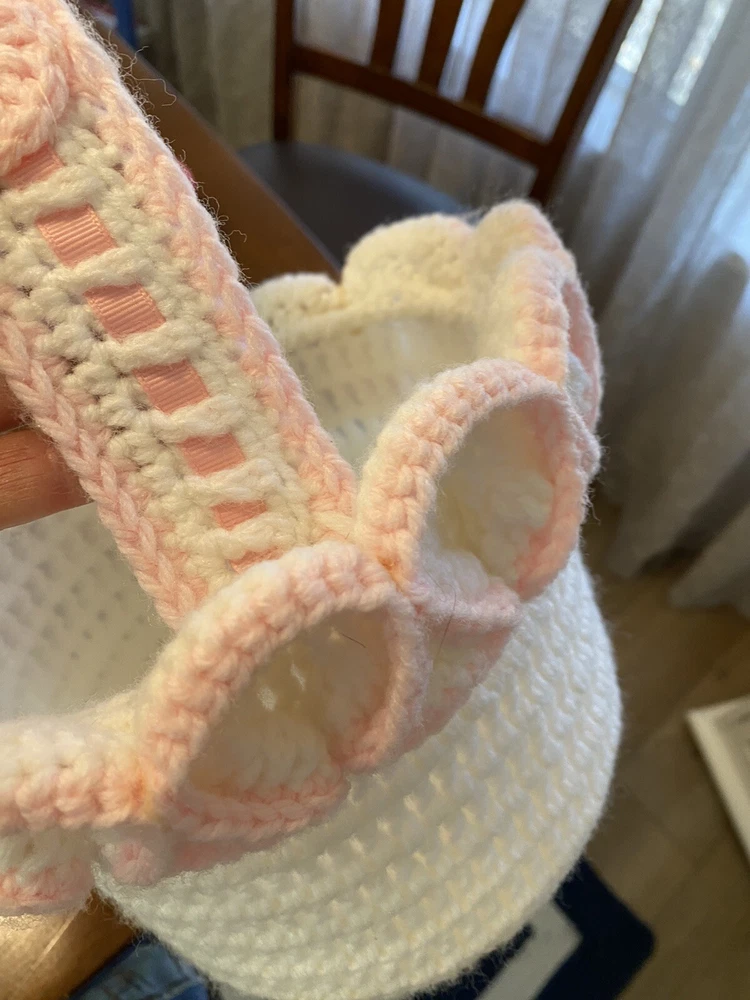 This Vintage Hand CROCHETED Stitched Easter Basket Granny Chic Cottage Pink White is a perfect addition to any room Very granny core Original vintage sweetie Please see all photos Smoke Free Home Happy to combine for shipping savings