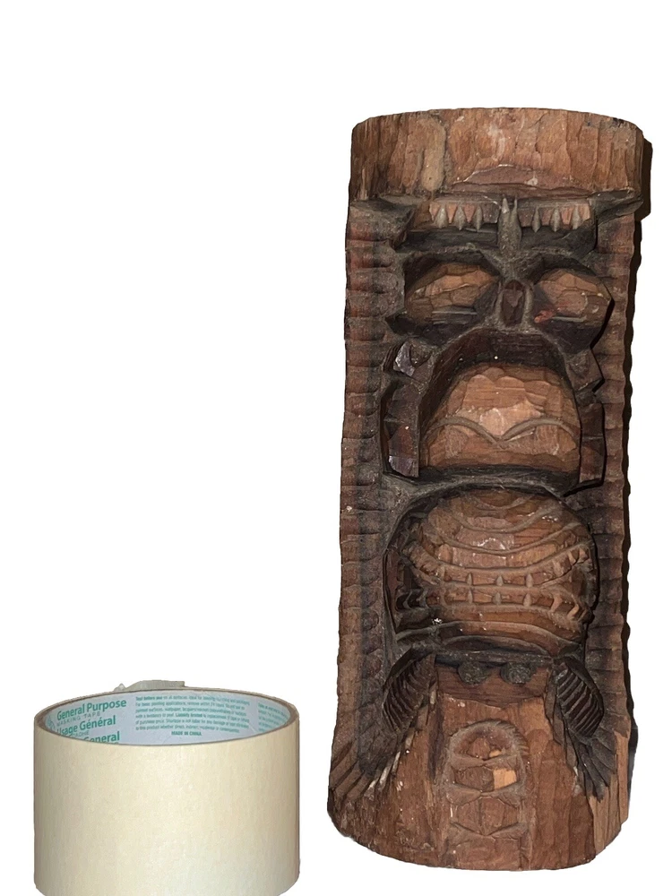 VINTAGE carving HAWAIIAN style WOOD TIKI GOD STATUE SIGNED KUKAILEMOKU Ku Bar