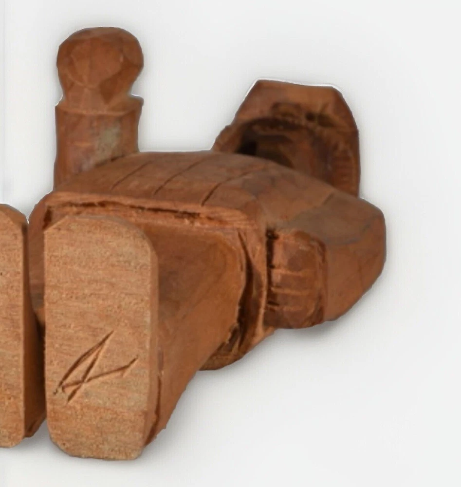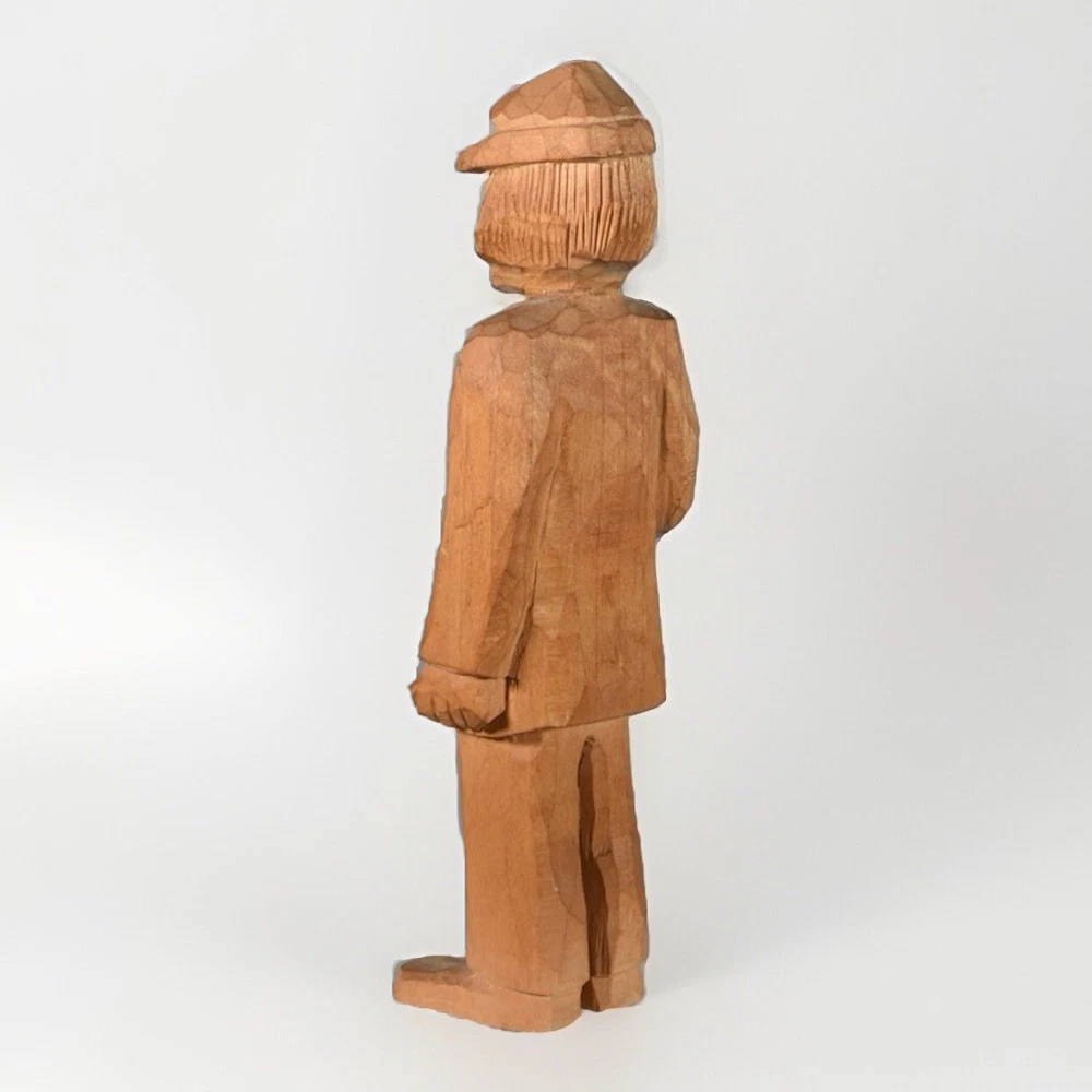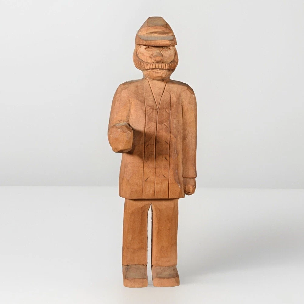 This vintage wooden sculpture depicts a folkloric mountain man. Almost of a soldier type. Handmade with intricate carving, this one-of-a-kind piece stands at 6 inches tall and is a unique addition to any art collection. The sculpture is made of wood and features a rustic, folk art style that is sure to catch the eye of any viewer. The artist behind this piece is unknown, has a signature on the bottom, but its originality is certain. This sculpture is perfect for those who appreciate handmade art and unique, one-of-a-kind pieces. Whether displayed in a living room, office, or gallery, this Alpine mountain man sculpture is sure to be a conversation starter. If you have questions, please ask. Thanks and God bless