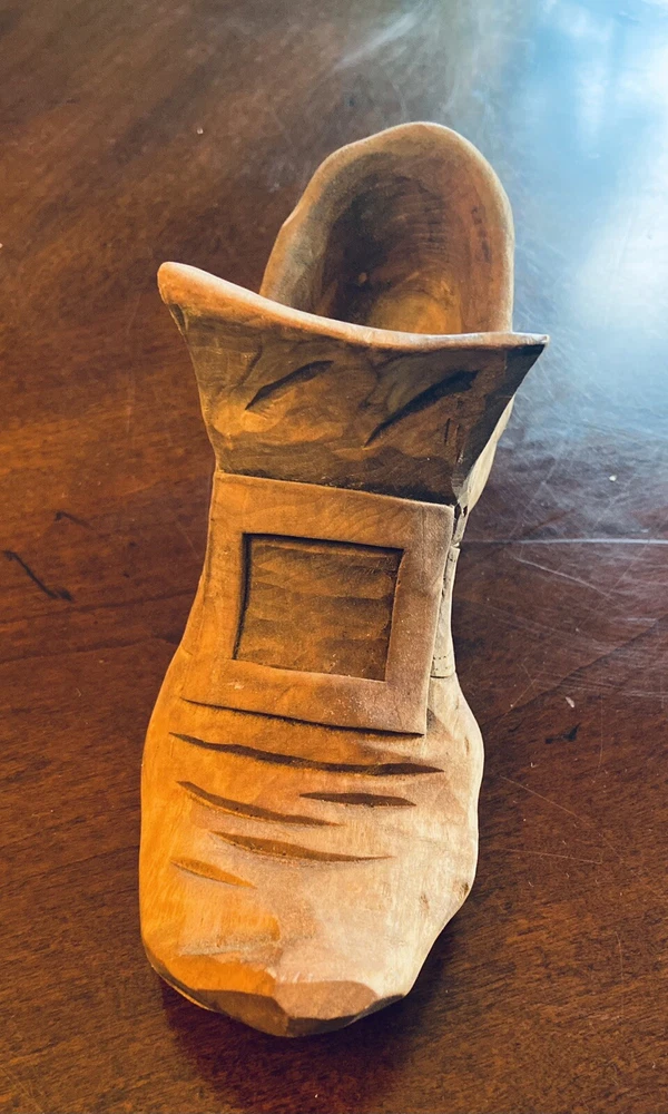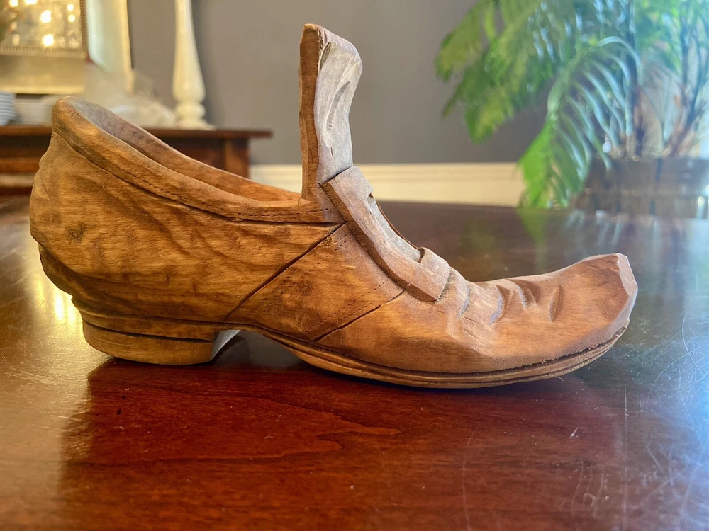 This vintage hand-carved wooden shoe is a beautiful example of colonial style. Crafted by The Whittlers, this shoe is a unique piece that will add charm to any collection. The shoe is signed and was made in the United States during the 1970s. It is a handmade item and is in excellent condition. The shoe would make a great addition to any decorative collection or as a unique gift for a loved one.