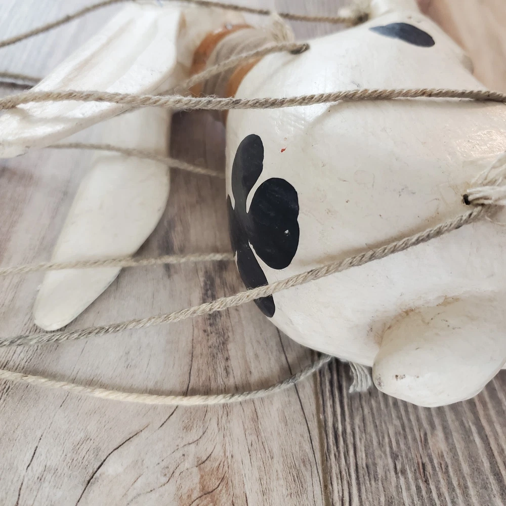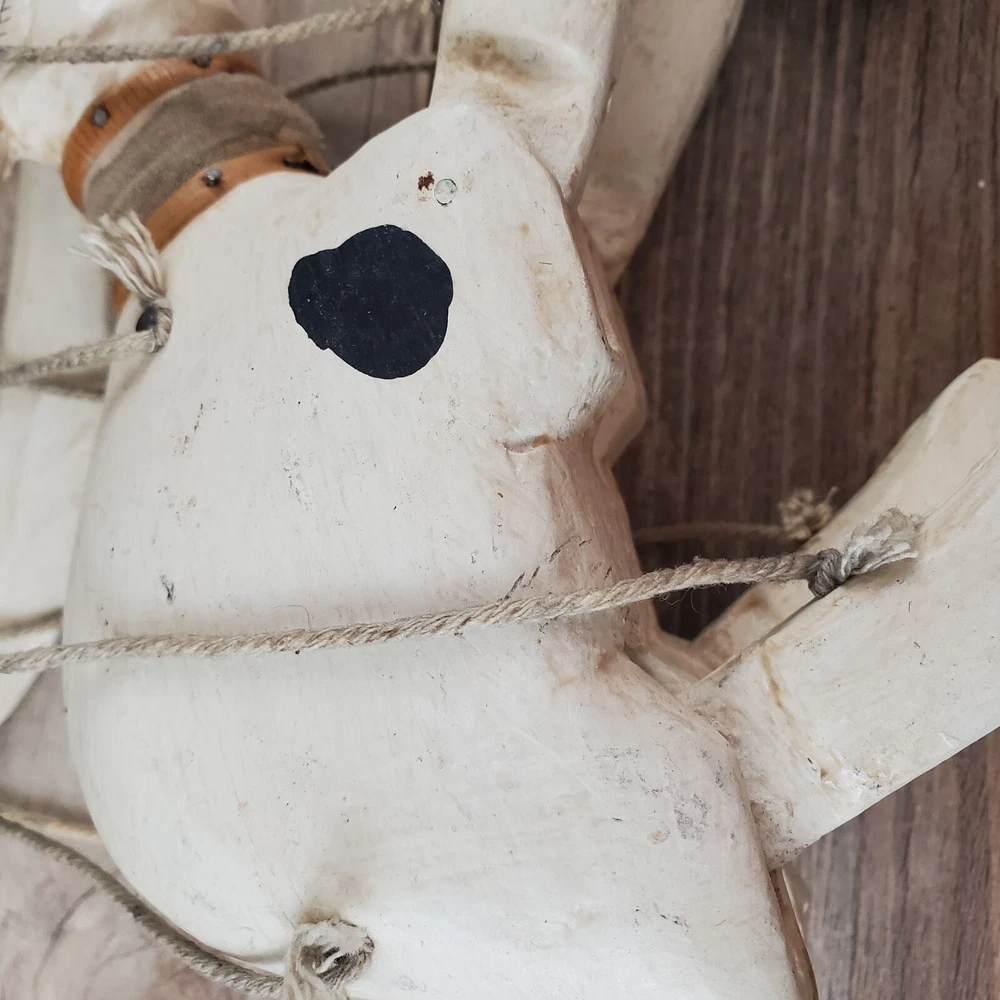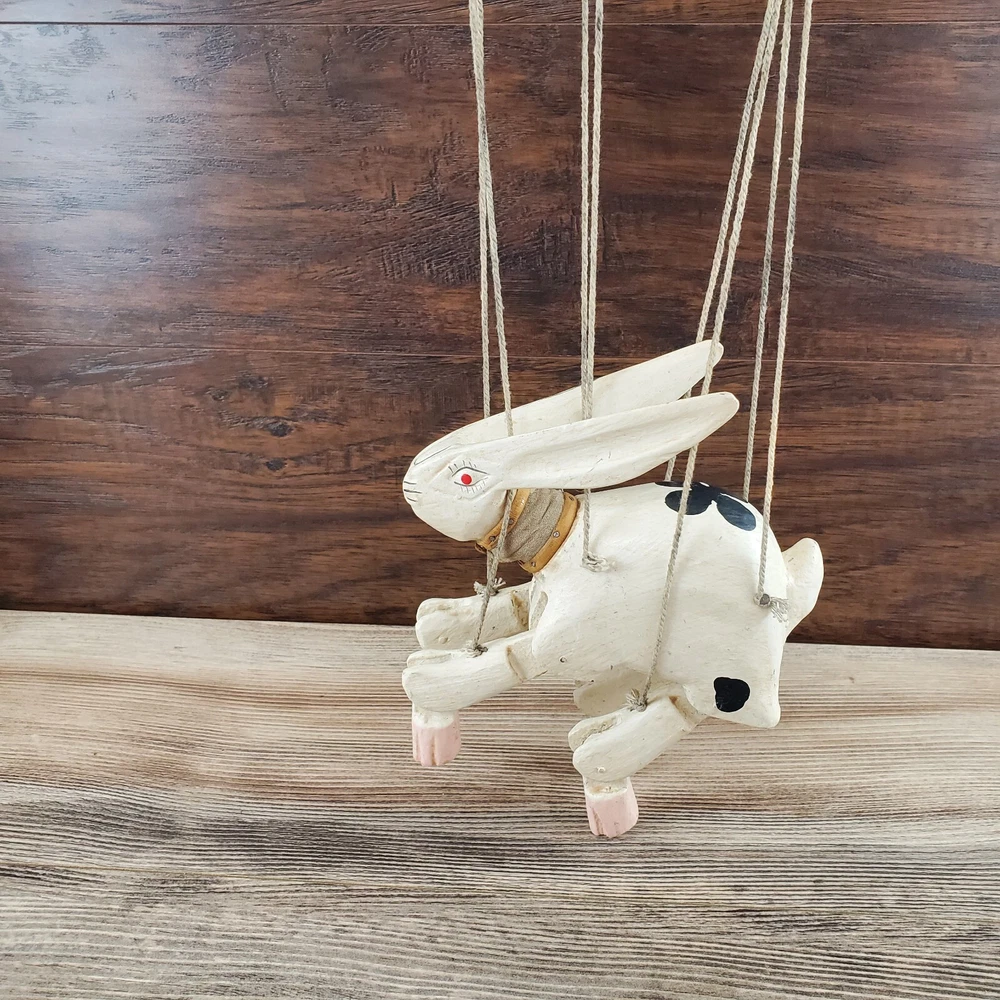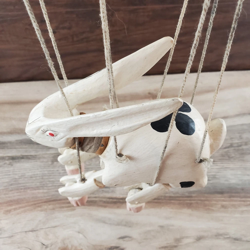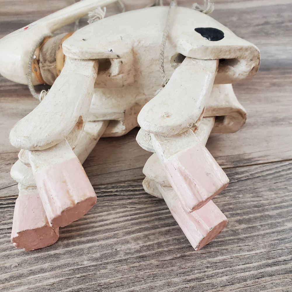 Vintage Hand Carved Wooden Rabbit Bunny Marionette String Puppet Farm Folk Art Well loved, but with no obvious flaws or damage. This item does have a smell, depending on how sensitive you are to smells. I'm not certain, but if I had to guess I'd say it was a smoke smell. I'm fairly sensitive to smoke smell and will often throw items away if I find they smell of smoke. This item sat on my desk and I did not notice the smell until I put my nose to the item itself. If you are very sensitive I would avoid the item for that reason. Other than that, there is just general wear and signs of age. I am unsure on the actual date, but it does appear to be very old. Please view the photos carefully for condition details. Measurements are in the photos. Don't forget to check out the other items in my shop. I'm getting in new fun things all the time. Thank you for looking! Have a great day!