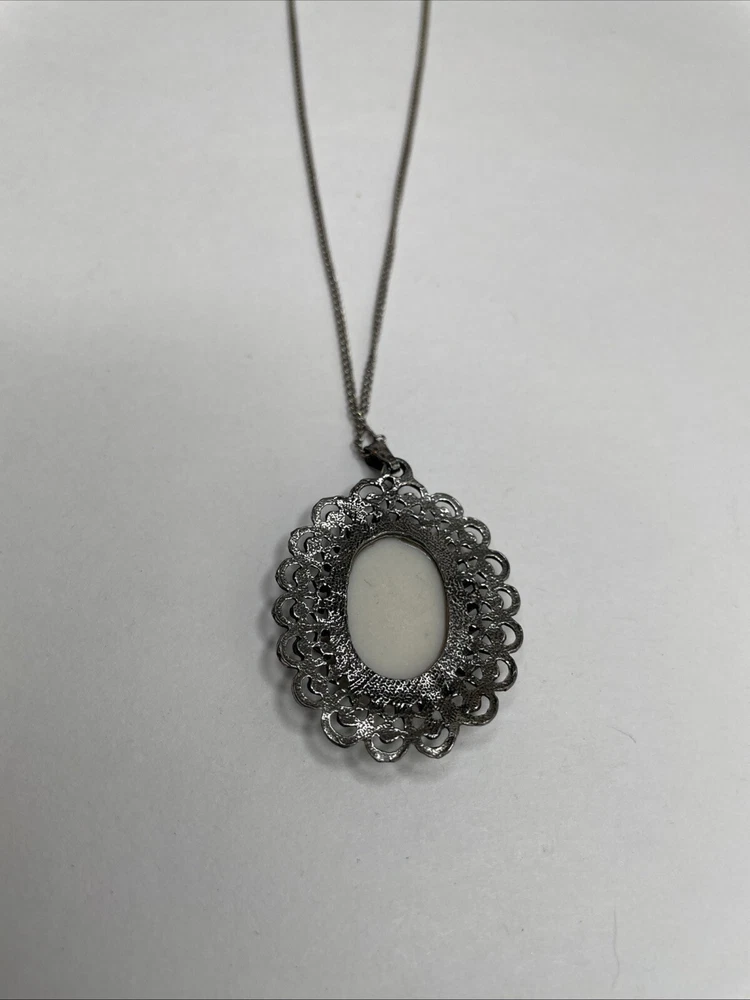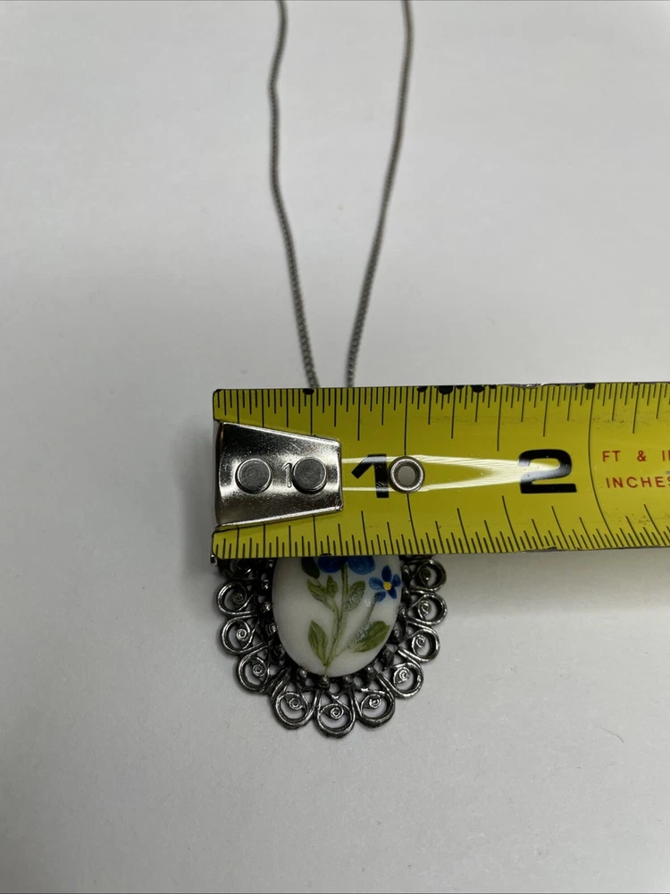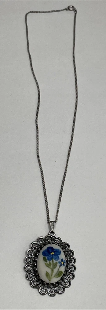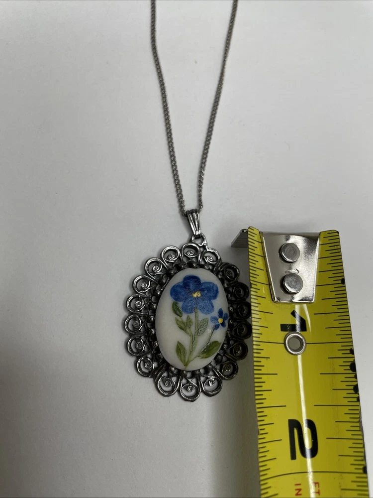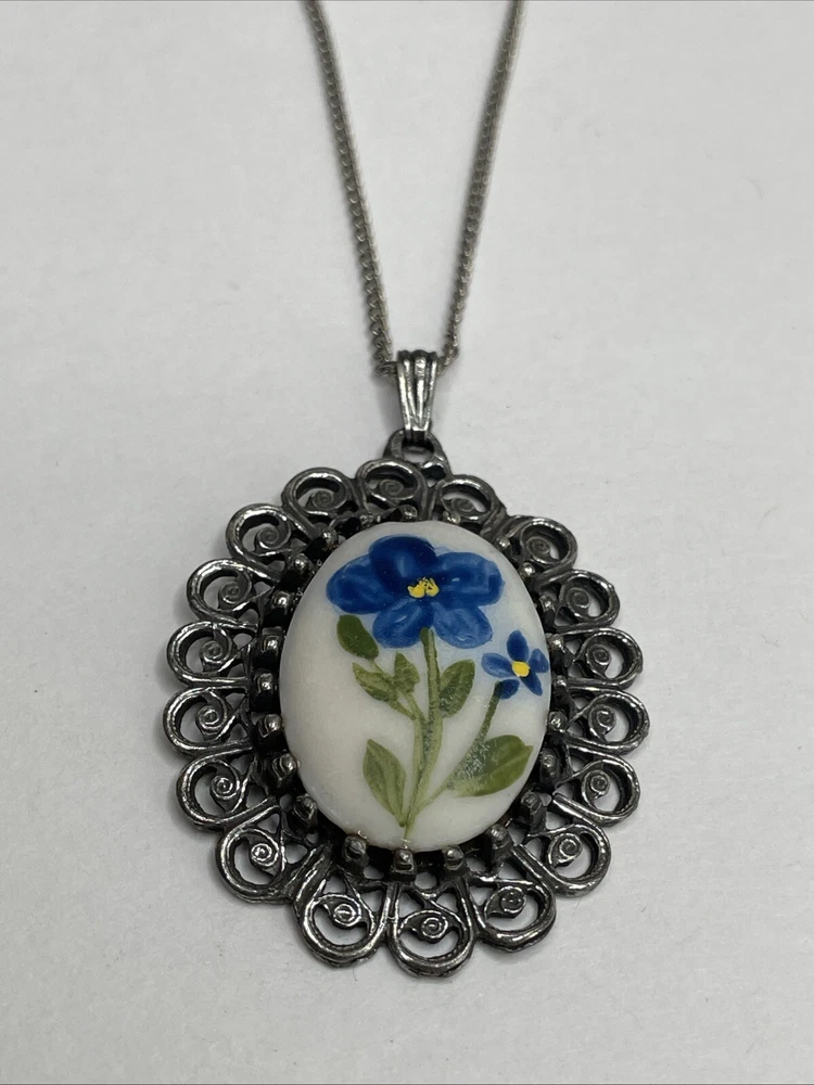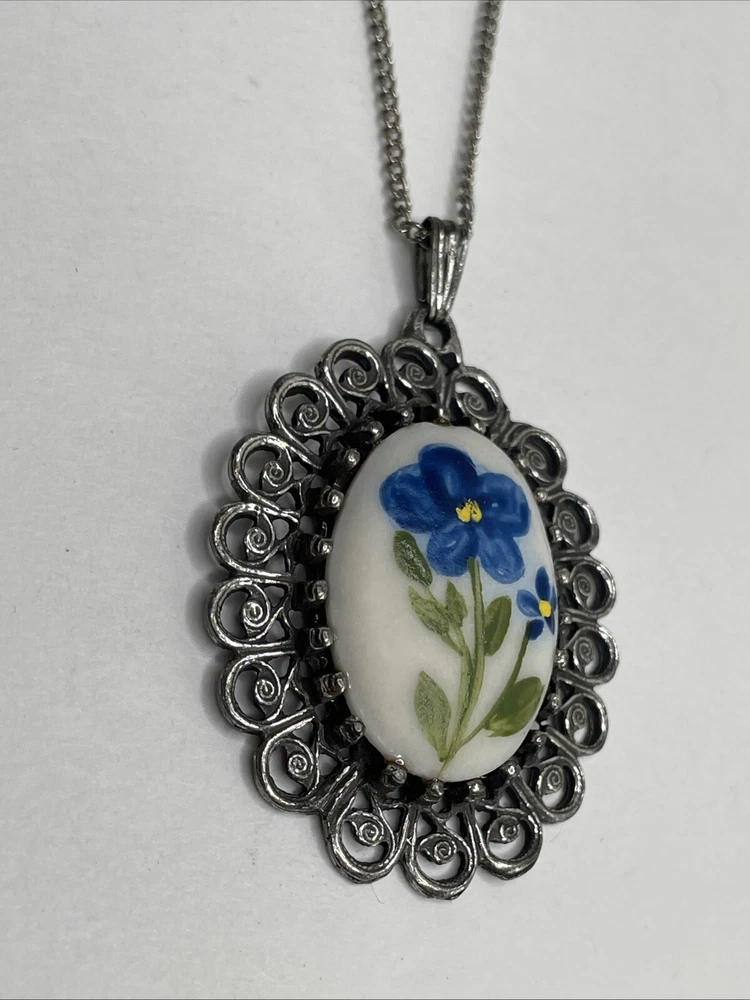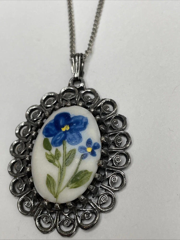 Vintage Hand Painted Purple Flowers Violet's On Porcelain Pendant Necklace Check pictures to judge condition no returns Message me with any questions thanks