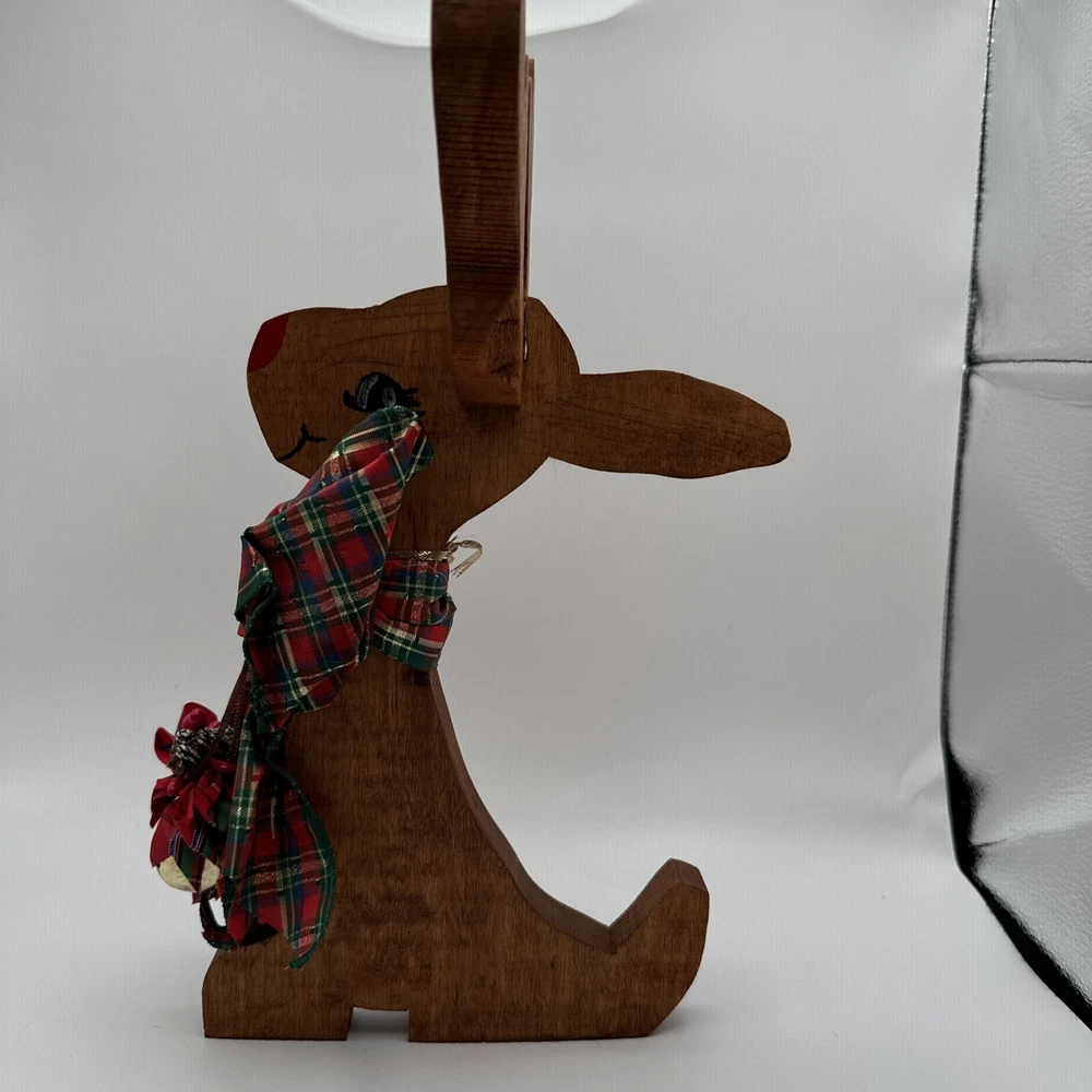 Vintage Hand Painted Wood Reindeer Christmas Decoration 15” Pre-owned. Some wear as shown. See measurements and pictures.