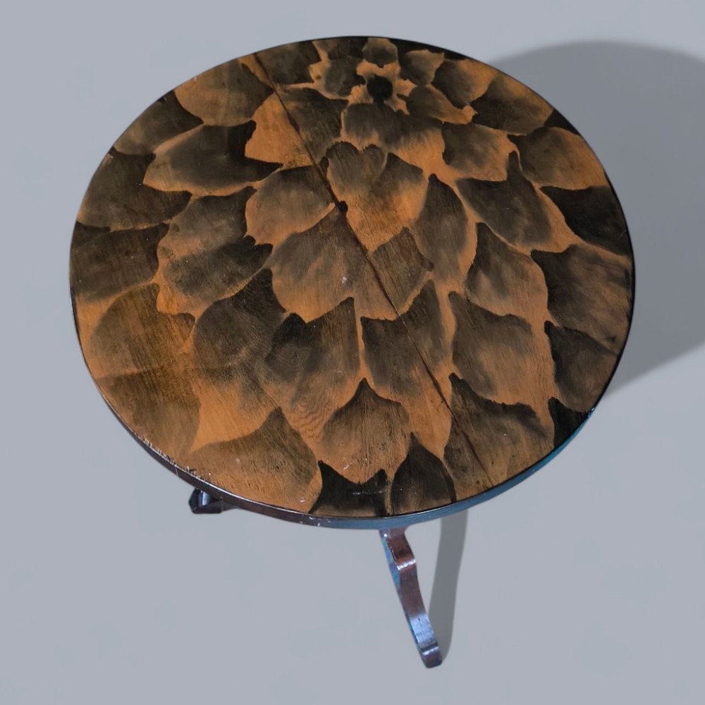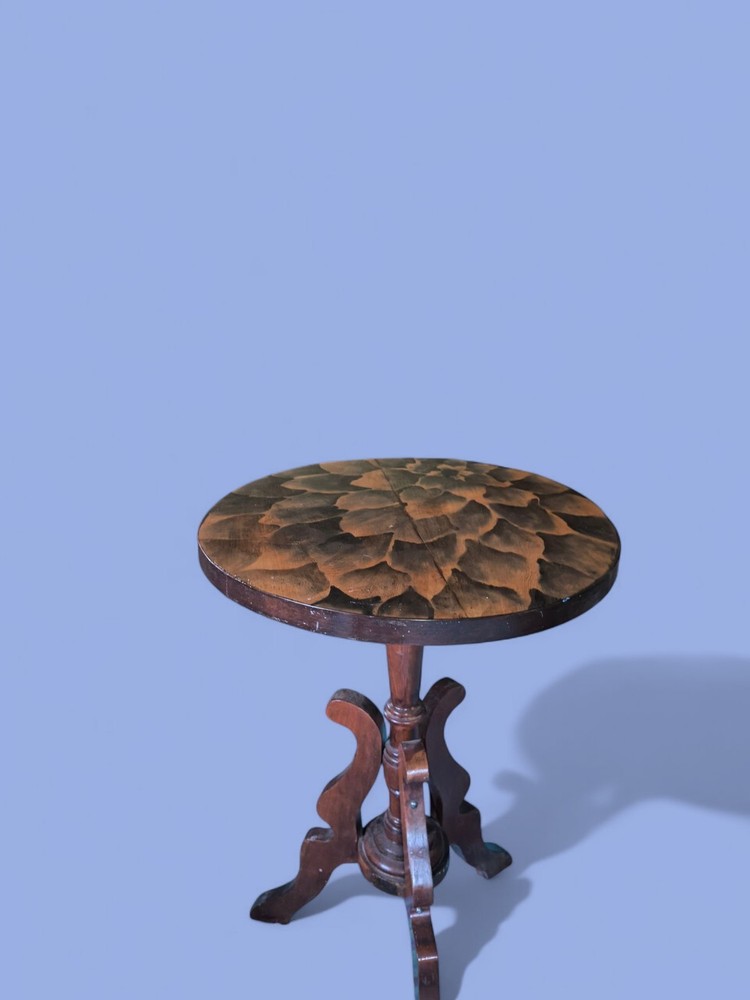 The Vintage Custom Pedestal Table by Blue Artistry exudes retro style with its intricate design. The table's pedestal base adds a touch of elegance and stability, making it a unique and eye-catching piece of furniture for any home or garden. Perfect for those looking to add a vintage flair to their decor, this table is sure to be a conversation starter and a focal point in any room.