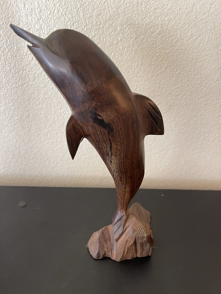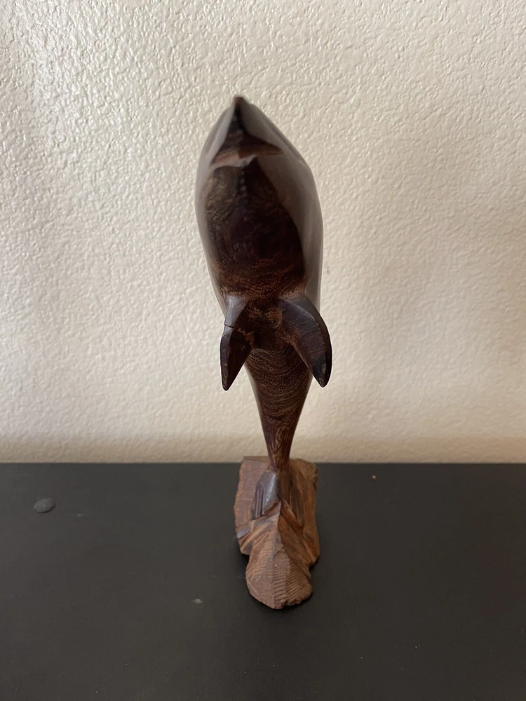 Vintage Handmade Hand Carved Mahogany Wood Dolphin Statue 10”Gorgeous