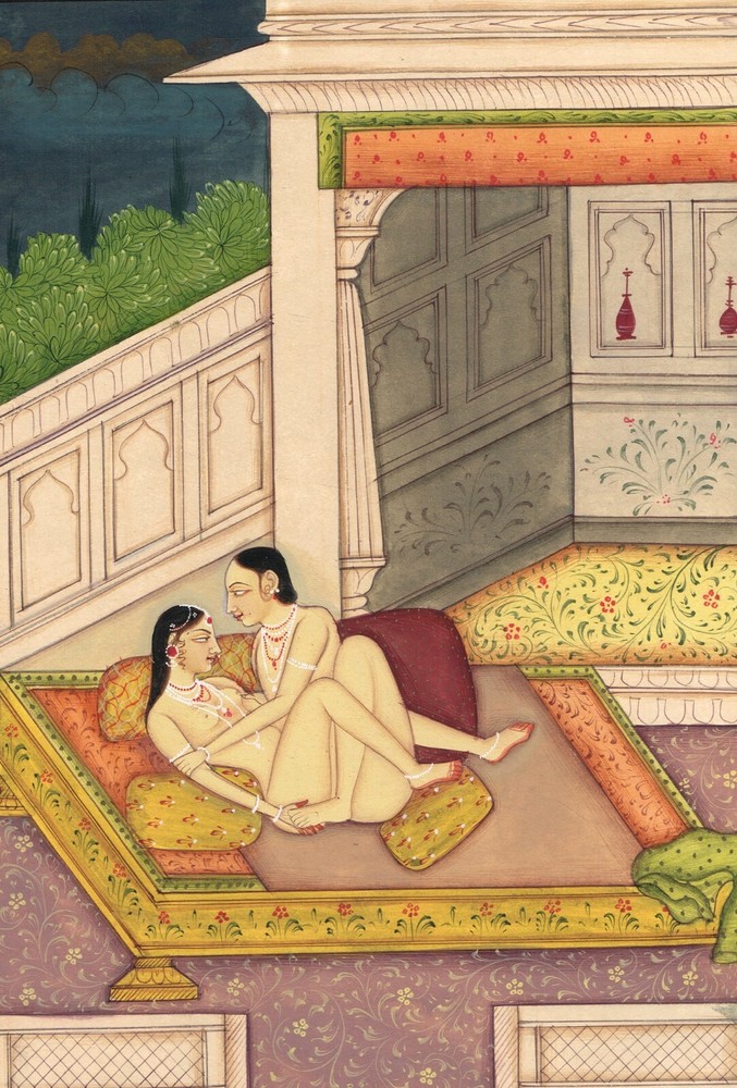 Vintage Handmade Indian Kamasutra Erotic Art Painting 6.5x10 Inches
