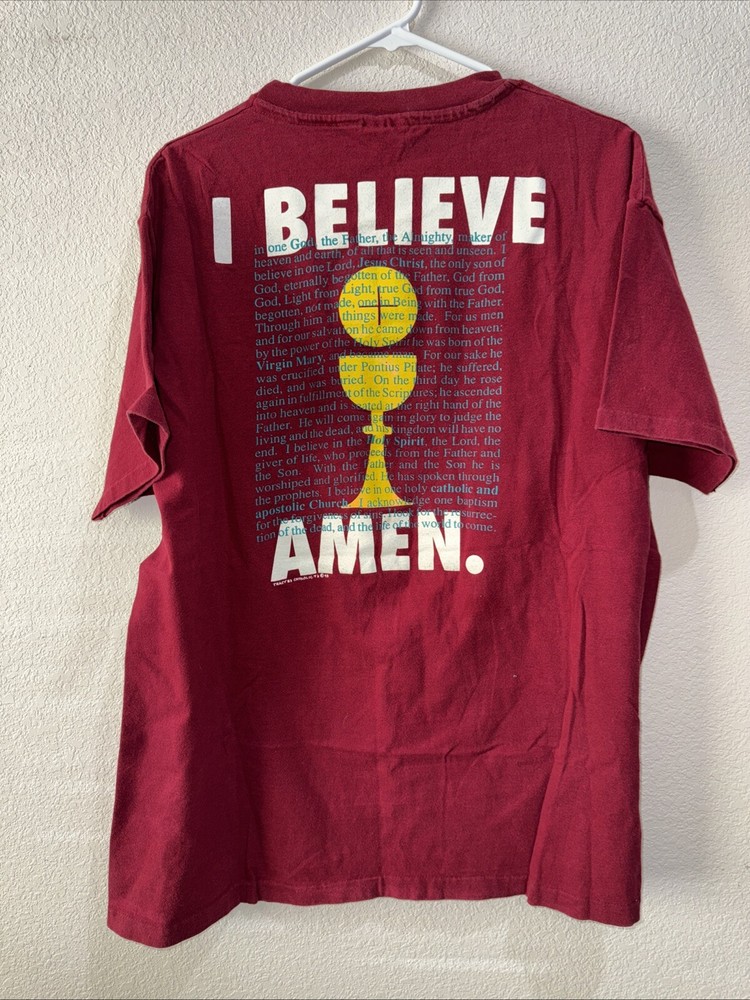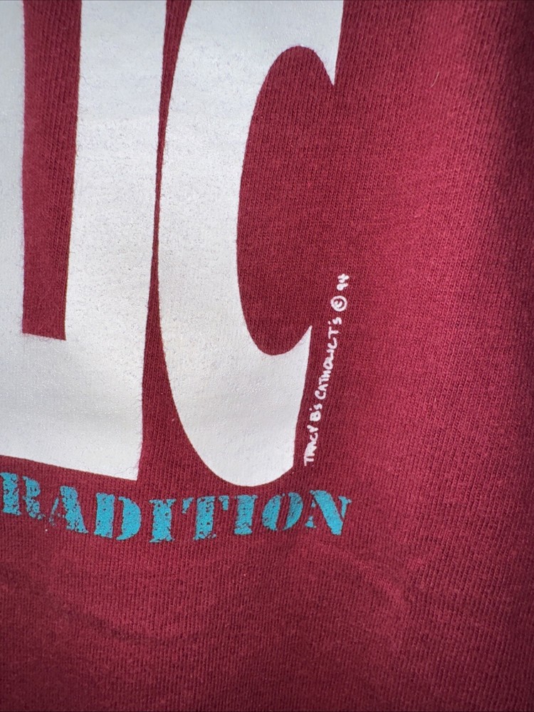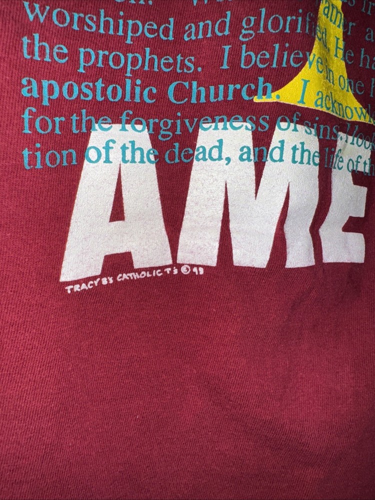 Love this vintage Hanes tee! The burgundy color is rich and classic, and the fit is perfect—comfortable yet not too loose. The "Proud To Be Catholic" print is bold and well-preserved, making it a great conversation starter. Super soft fabric, just like you’d expect from Hanes. A must-have for anyone who loves faith-inspired vintage style!