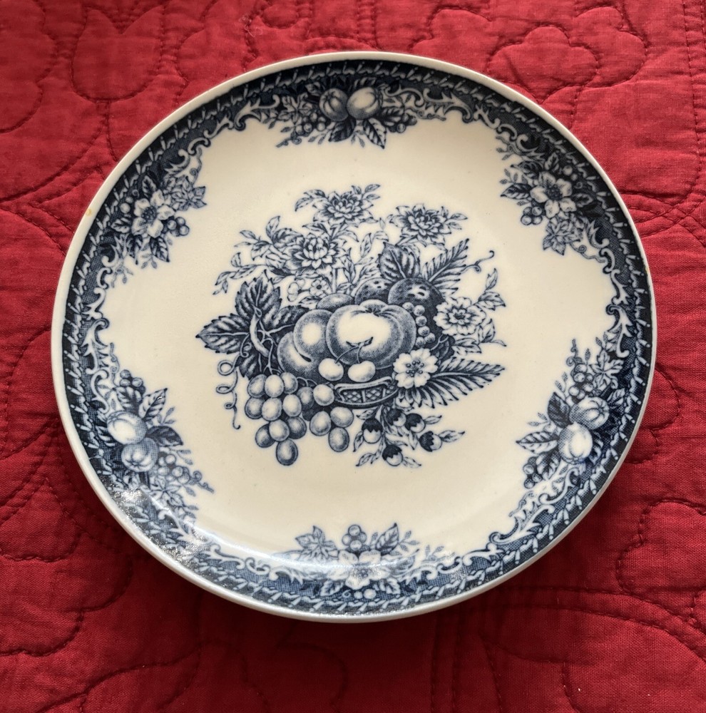 Vintage Hara Bone China Bread Plate Fruit Vase Blue & White - 6" diameter Please review all pictures carefully as they are part of the description. Questions are welcome.