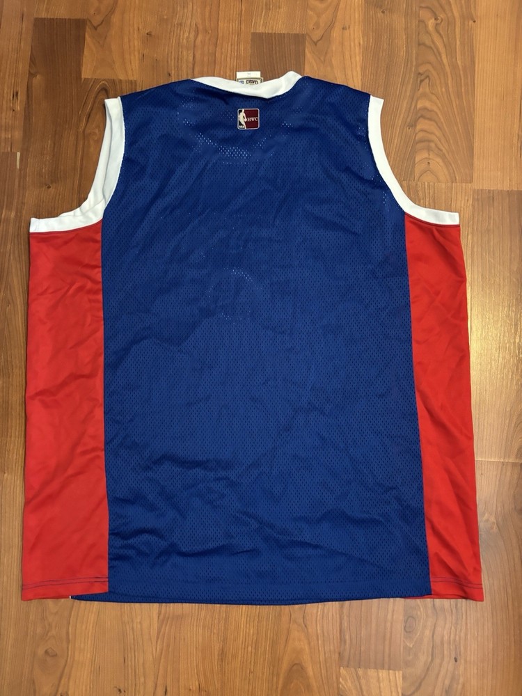 The Vintage Hardwood Classics Detroit Pistons Jersey is a nostalgic piece for basketball fans, featuring embroidered team logos in blue and red. This authentic NBA jersey is designed for men in size 3XL, ideal for fans of the Detroit Pistons looking to represent their favorite team in style. Made in Korea, this jersey is perfect for wearing during the regular season games or as a stylish casual outfit for any basketball enthusiast.