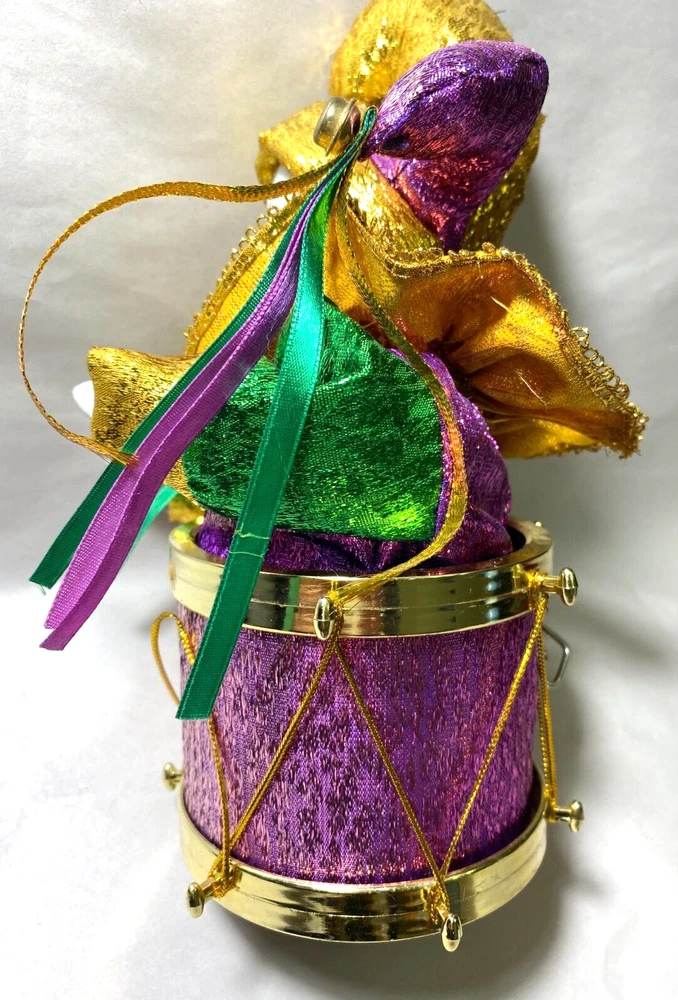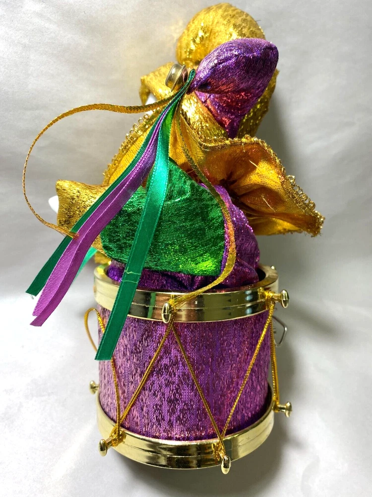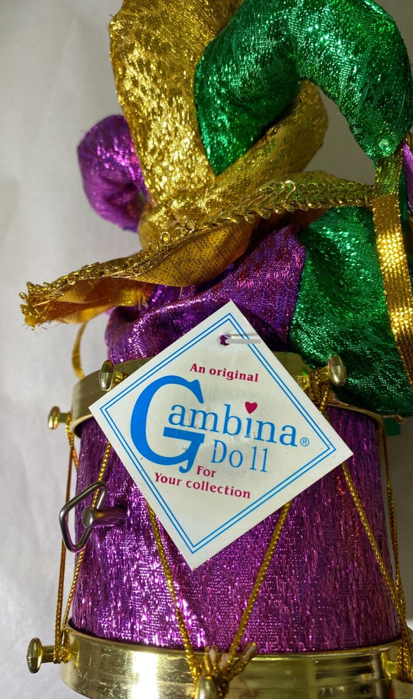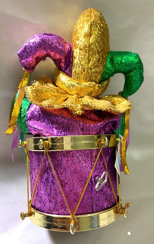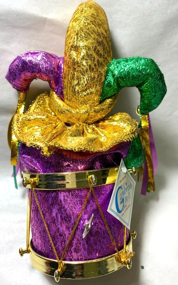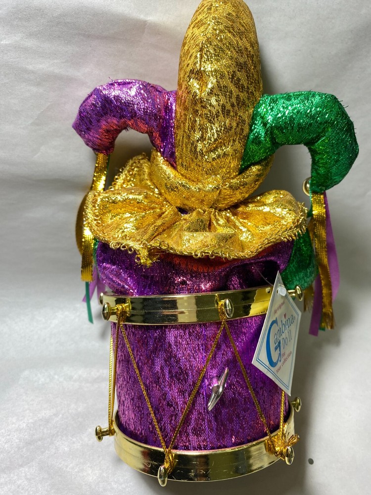Harlequin Jester Clown Doll in Drum Music Box, New Orleans, Porcelain face and hands Vintage collection Size: 9.5 inches Color: multi-colored Pre-owned with original tag Shipped with USPS Ground Advantage Accept Return within 14 days as long as item is in the same condition as it was shipped. Buyer Pays Return Shipping. Thank You for your Business and Have a Nice Day!