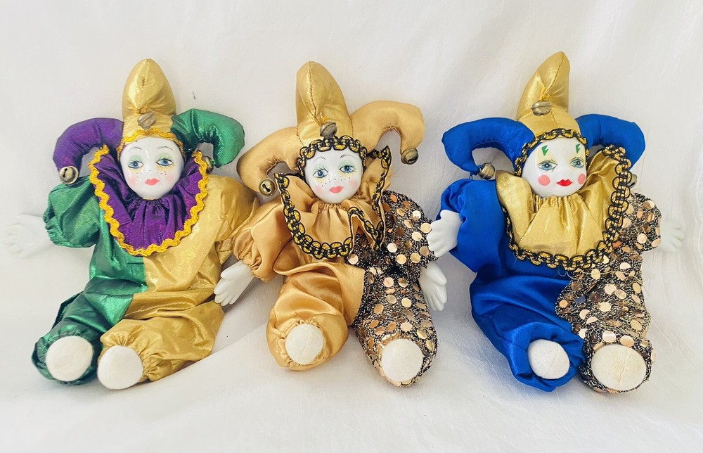 Description: Vintage Harlequin MARDI GRAS Doll Porcelain Art Clown 3 Pieces Collectible Bendable. Measures 9" Tall C 8" Wide (expanded). Shipping: Fast shipping ! I will ship your items to you the same day I receive your payment whenever possible. When payments are made after 2 p.m. Monday thru Friday or on weekends and Holidays I will ship your item the next business day. Packing, time, gas supplies, and fees are included, so if shipping is high, please pass on my items, thank you. I am always willing to combine shipping costs when more than one item is purchased, so check out the other items that I have listed!