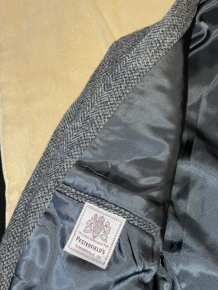 Very cool Harris Tweed vintage sports coat in sz 40/42. There are no size tags but it measures pit to pit 21” and length 32”. It’s in fabulous condition..